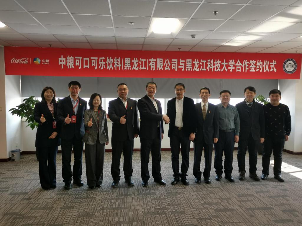2月20日,乐鱼网站_乐鱼(中国)与中粮可口可乐饮料(黑龙江)有限公司(以下简称“中粮可口可乐公司”)合作签约仪式在中粮可口可乐公司会议厅举行。学校党委常委、副校长刘志强,中粮可口可乐公司党支部书记、总经理赵铁甲以及双方相关部门负责同志出席了签约仪式。