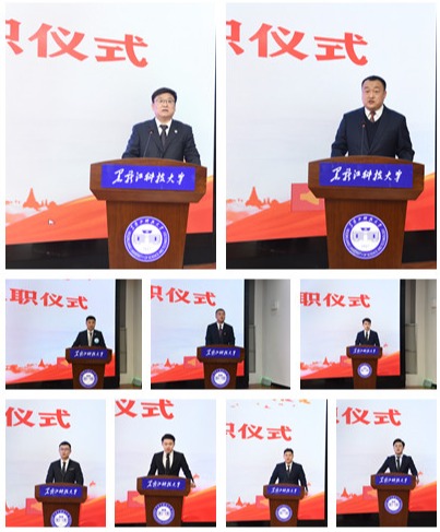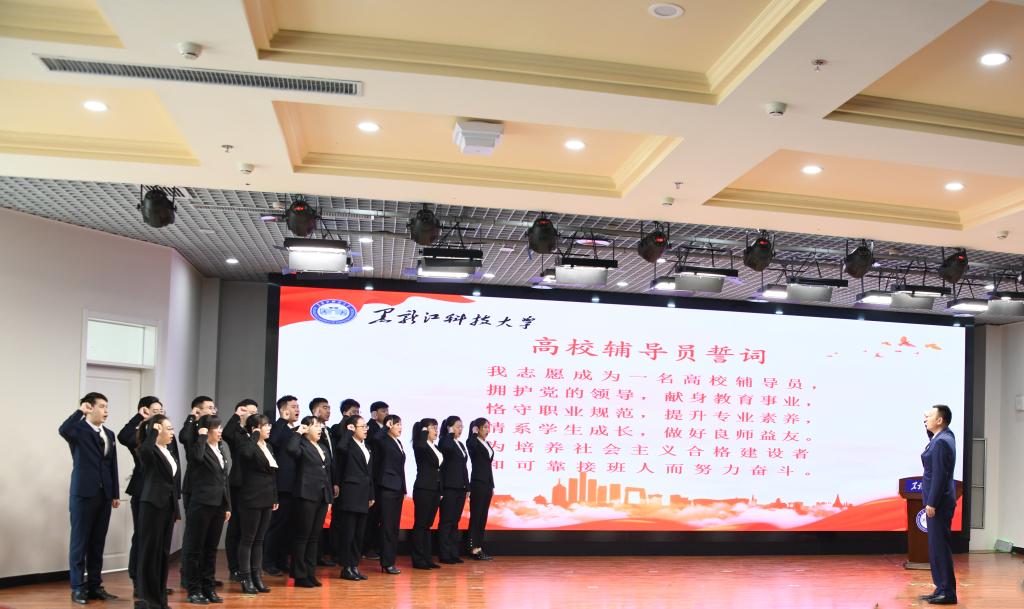 仪式上,学工部副部长、校团委书记宋玉彬宣读新任辅导员任职岗位决定;于成学为新任辅导员佩戴校徽并颁发入职纪念书;管理学院党委副书记张晓光代表“青蓝导师”进行寄语;优秀辅导员马克思主义学院副处级辅导员张瑞代表在职辅导员进行“同仁寄语”;环境与化工学院辅导员姜雷代表新任辅导员进行表态发言;正处级辅导员王伟强带领新任辅导员与在职辅导代表重温“高校辅导员誓词”。