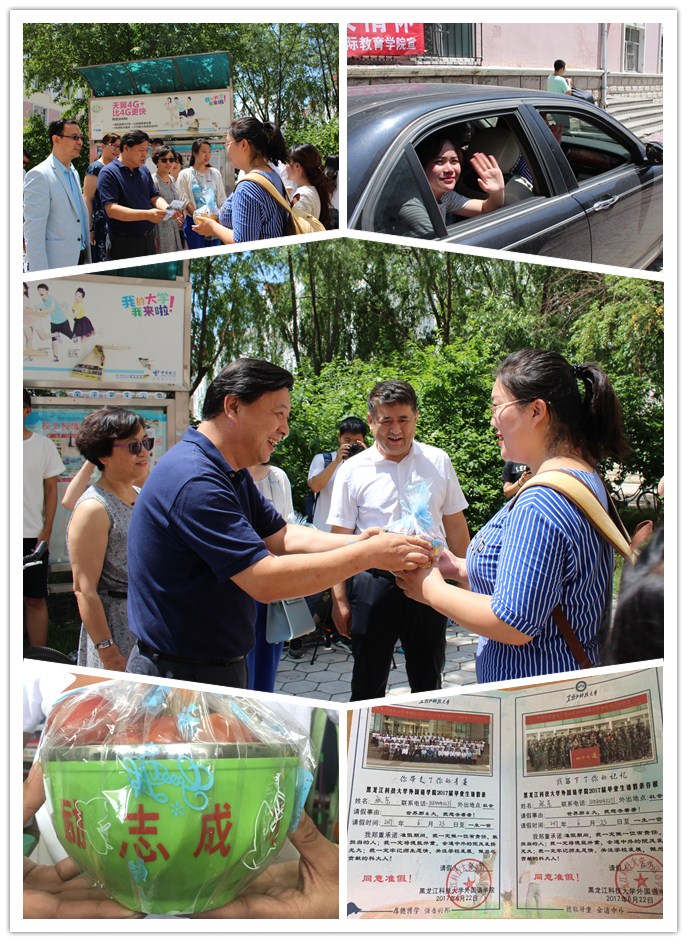 22日是午12时,在第九学生公寓。校党委常委、纪委书记田成义来到外国语学院学生公寓楼下,同外国语学院党政领导及全体辅导员一同送别离校学生。田成义书记为第一批离校的毕业生送上了“励志成才桃李天下 事事顺利”祝福。当毕业生交上“乐鱼网站_乐鱼(中国)外国语学院2017届毕业生请假条”时,一句“你带走了你的青春,我留下了你的回忆”带出了学院对毕业生无比的眷恋;一个个装满荔枝、桃子、李子、柿子的彩色碗承载了外国语学院全体师生的祝福;一个个幸福车队满载着学院党委深深的关爱护送毕业生踏上人生的新征程。