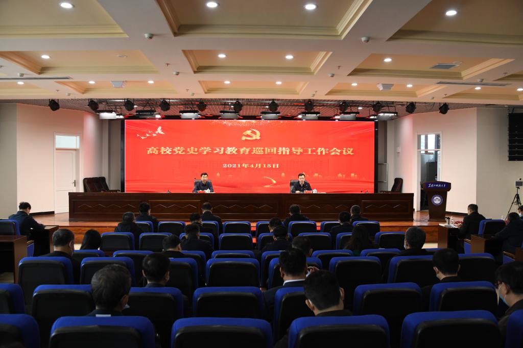 4月15日,高校党史学习教育第三巡回指导组组长、大庆师范学院党委委员、副院长刘恒,第三巡回指导组成员、省政府教育督导室三级调研员王月华来校指导工作。全体校领导、机关部门负责人、基层单位党政负责人、思政课教师代表和辅导员代表参加会议。校党委书记、党史学习教育领导小组组长周宏力主持会议并向指导组汇报了学校党史学习教育开展情况。