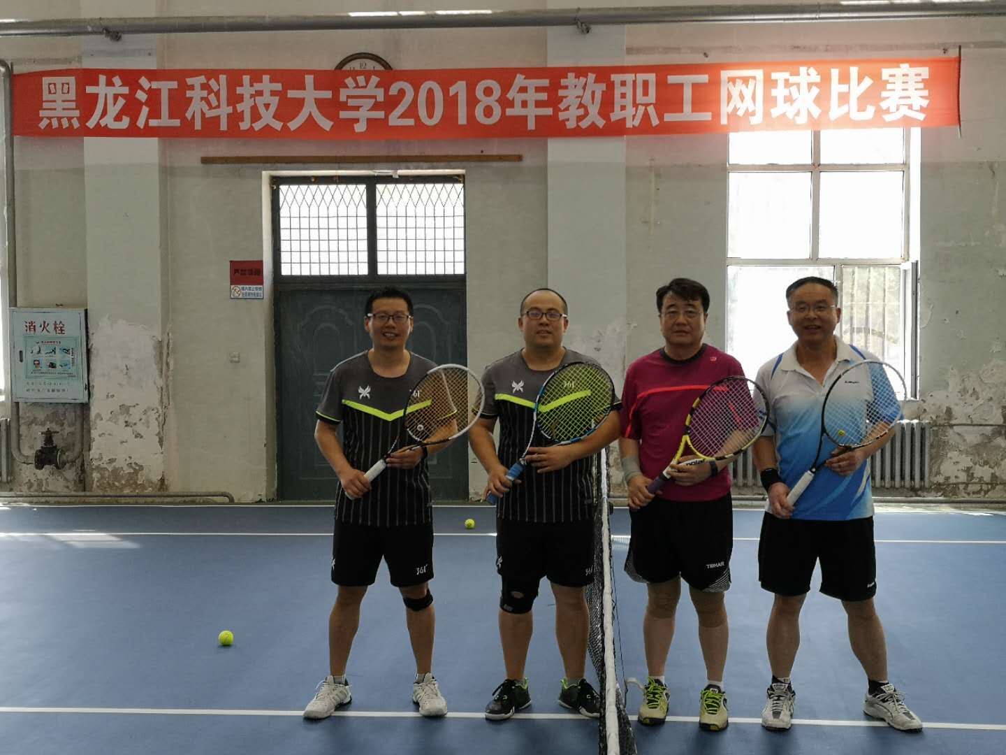 为了庆祝中国共产党成立97周年,丰富广大教职工的业余文化生活,推动学校网球运动普及、提高, 6月23日,学校2018年教职工网球比赛在体育馆网球场举行。本次比赛由校工会主办,体育部、教职工网球协会承办,校党委常委、副校长于成学为本次比赛开球。本次比赛得到各学院工会大力支持,教职工报名踊跃,参与积极性高。比赛设团体赛、男子单打赛和男子双打赛,各分两个阶段进行。