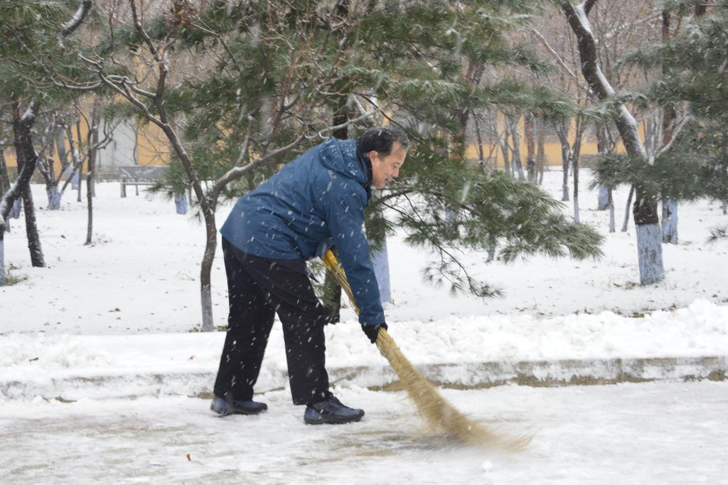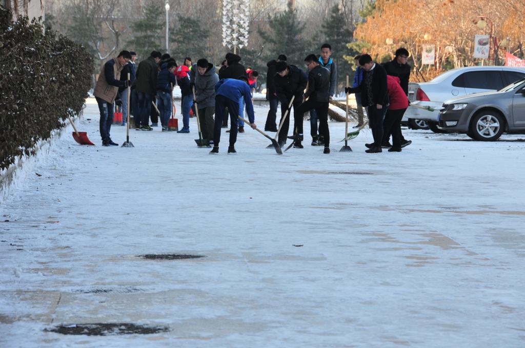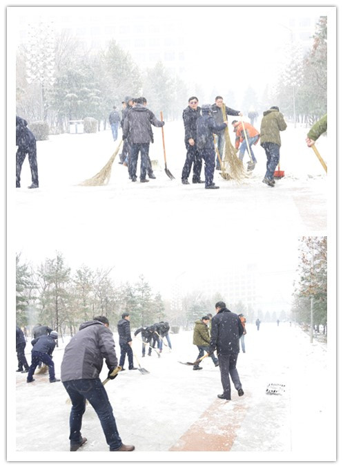 11月11日,今冬迎来首场大雪,给师生出行带来不便和安全隐患。为确保师生出行安全,全校各级党组织、各单位、各部门,广大干部、教师、员工、学生以高度的主人翁责任感,以雪为令,不等不靠,克服困难,积极行动,齐心协力,即下即清,共同投入到校园清冰雪活动中,从早上到晚上展开了一幅热火朝天的劳动画面,为文明和谐校园构筑了一道亮丽的风景线。