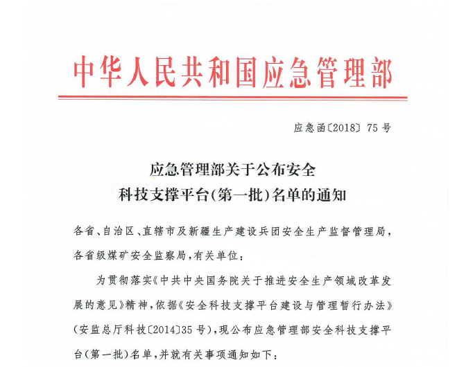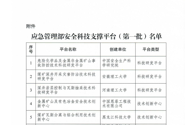 5月8日,国家应急管理部公布了《应急管理部关于公布安全科技支撑平台(第一批)名单的通知》(应急函〔2018〕75号),乐鱼网站_乐鱼(中国)安全工程学院牵头申报建设的“煤矿瓦斯分离与综合利用技术创新中心”正式成为国家应急管理部首批12个安全科技支撑平台之一。