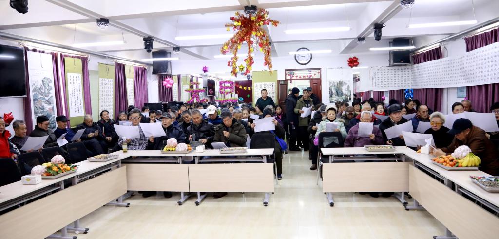 在联欢会开始前,离退休工作处处长郭洪林总结了2018年离退休工作情况,自管会主任王炳森总结通报了学校为满足老同志幸福生活需求给与的政策支持和经费投入,并代表老同志向学校党政表示衷心的感谢。随后,老同志们表演了自己编排的歌曲、舞蹈等节目,共同庆祝元旦的到来。并围绕纪念毛泽东诞辰125周年和改革开放40周年开展座谈,大家激情澎湃地合唱了歌曲《东方红》和《同一首歌》,以此纪念伟大领袖毛泽东诞辰125周年和改革开放40周年,表达了对新时代美好生活的信心和期待。