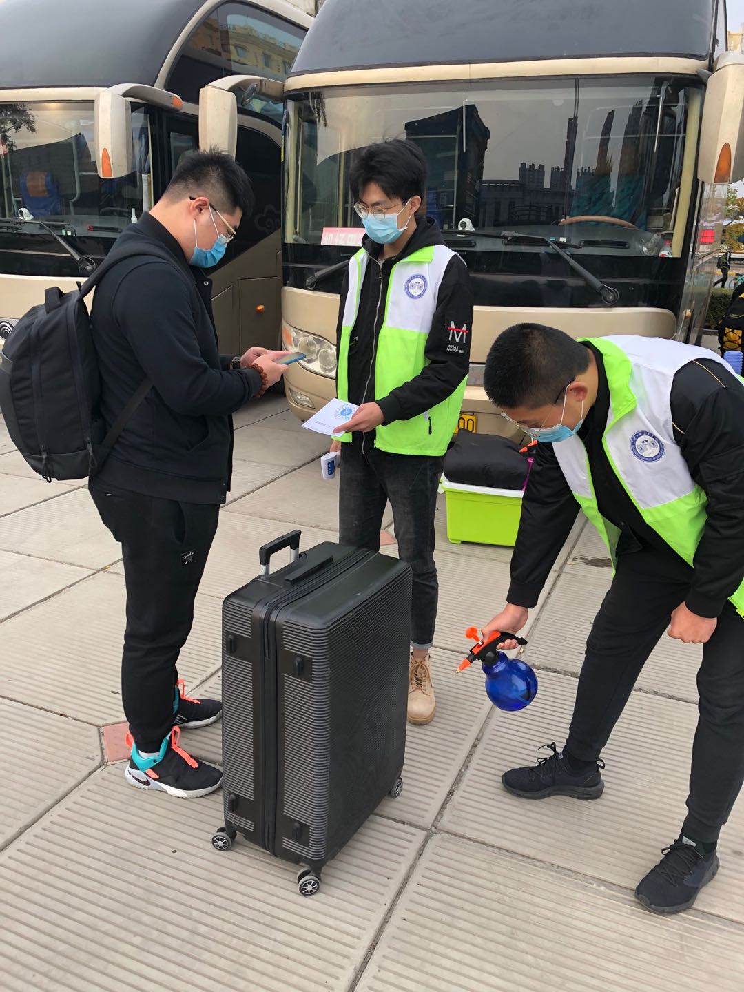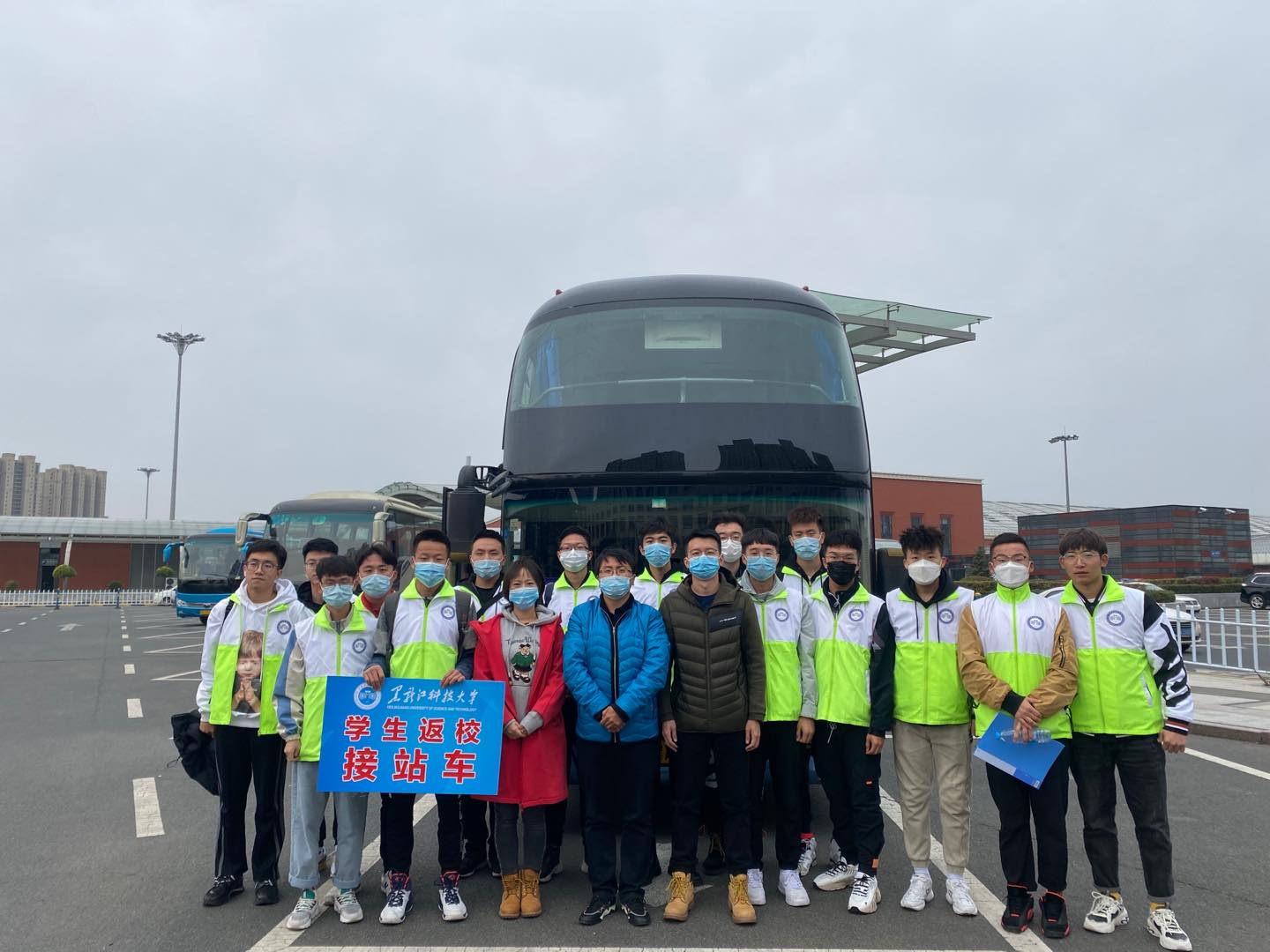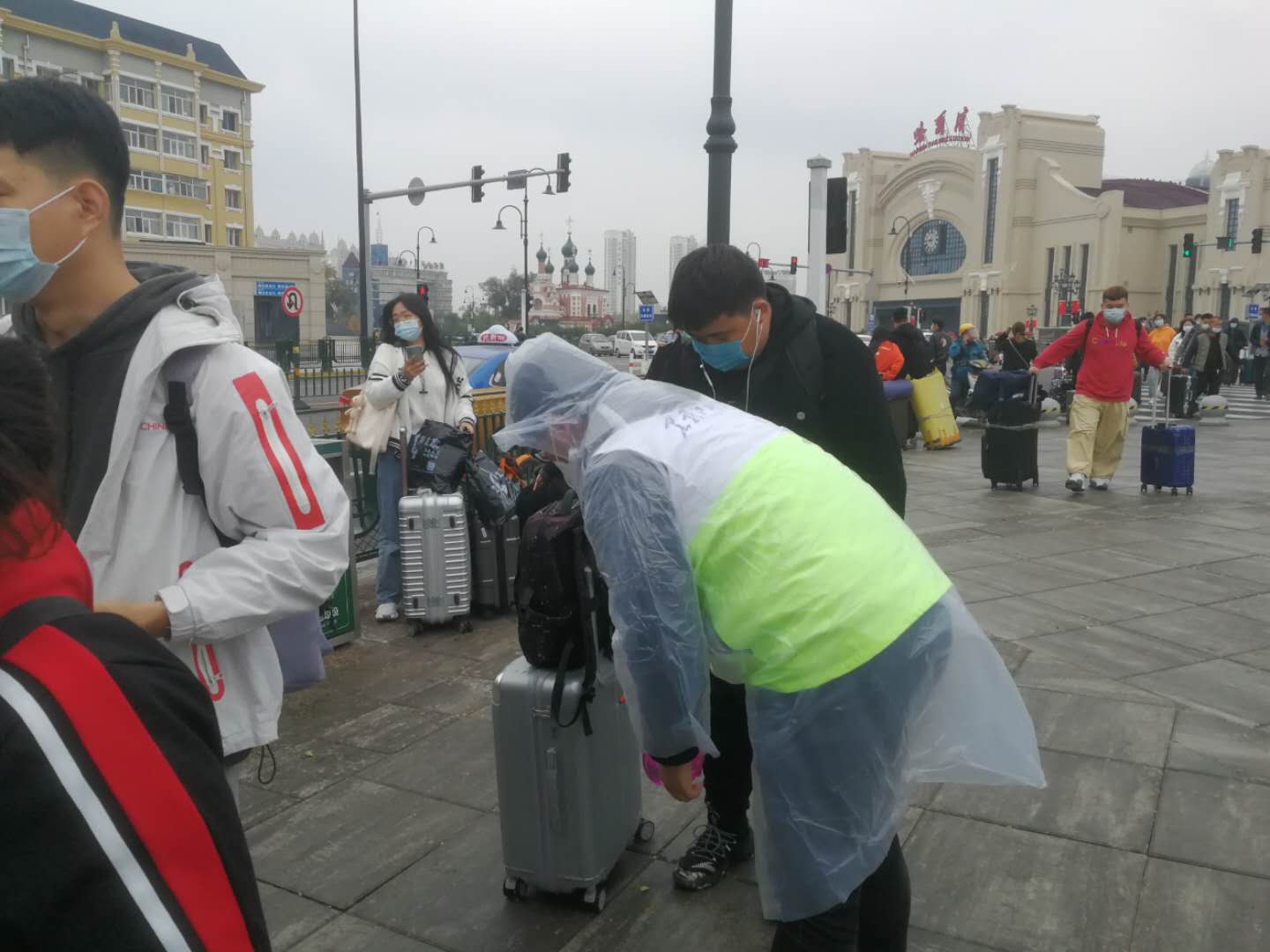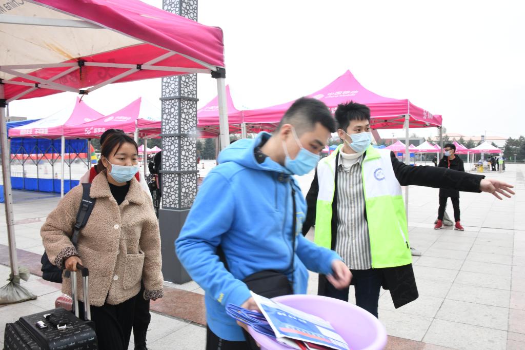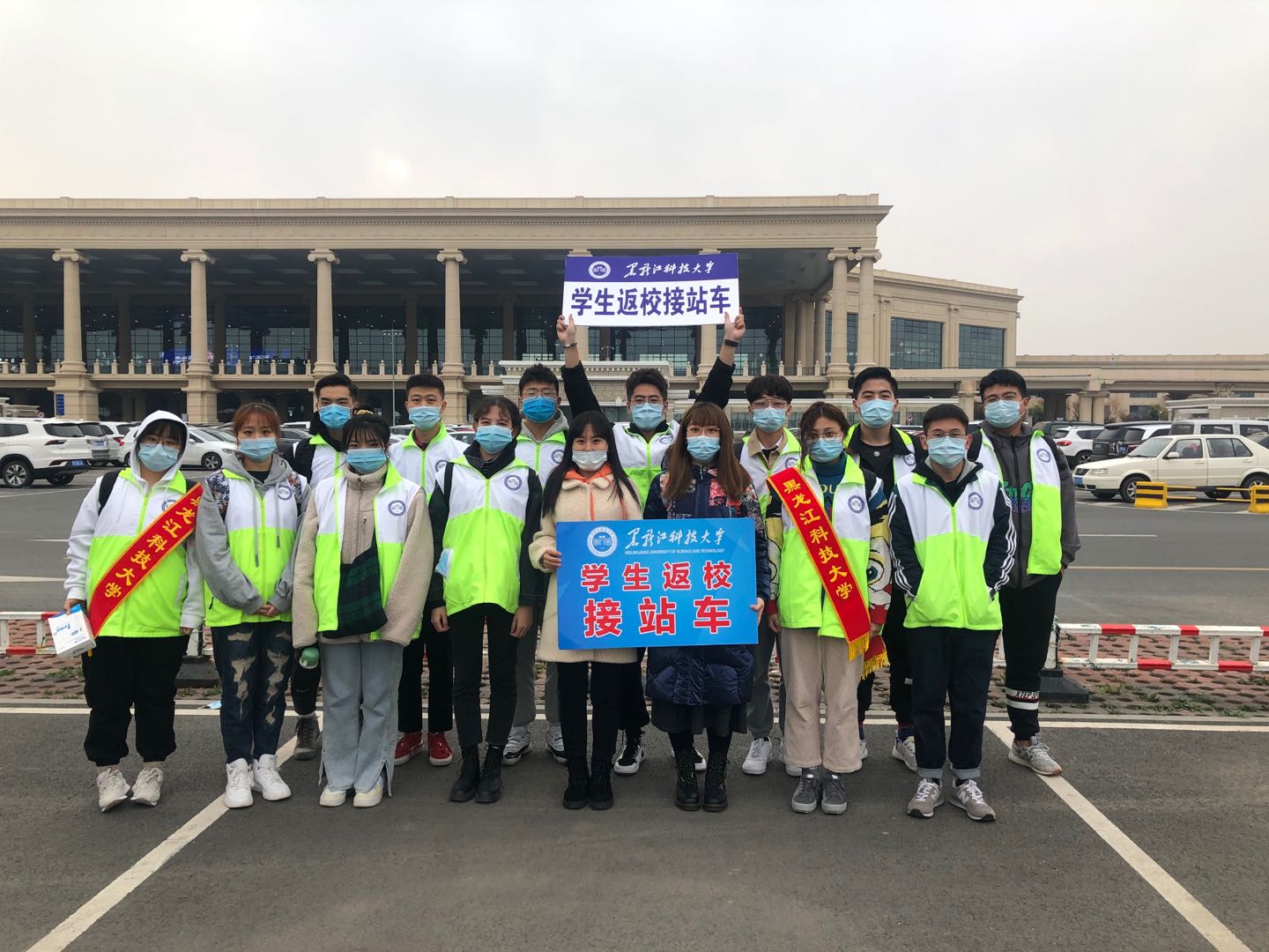 清晨6点,志愿者们手持标识牌,在哈尔滨站、哈尔滨西站、哈尔滨东站、太平机场设置接站服务台,全天做好接站准备。