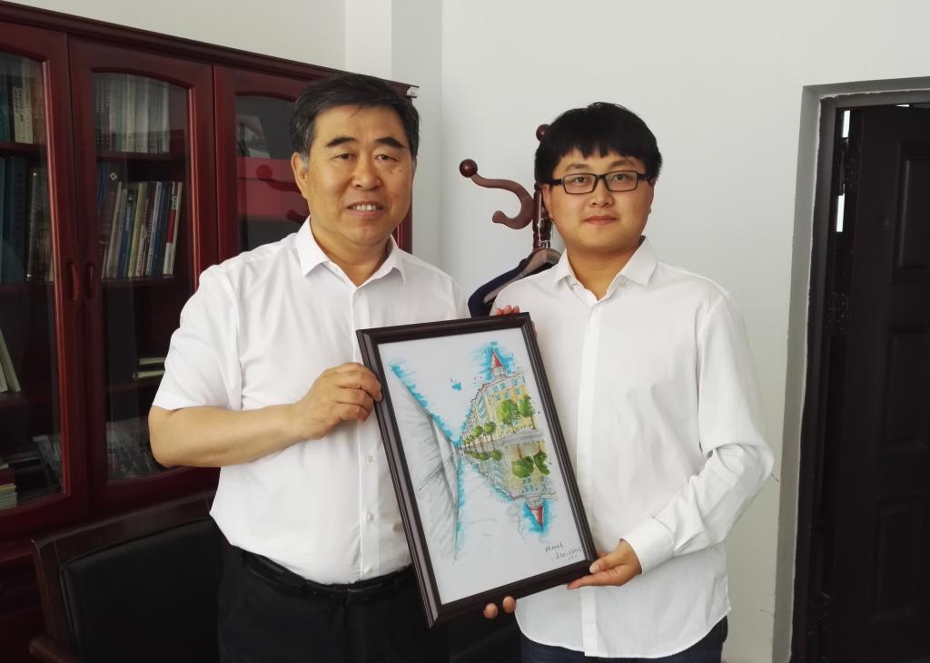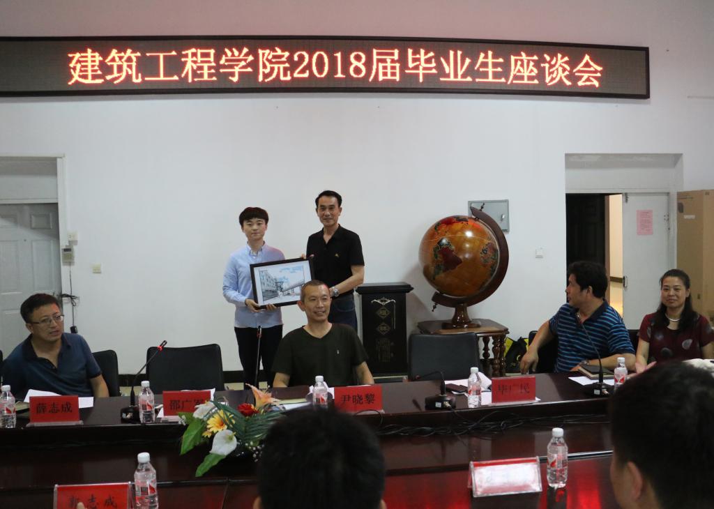 会后,建筑工程学院2018届毕业生代表梁霄、刘亚南分别向校党委书记武俊峰、校长郝传波、校党委副书记张明华、副校长毕广民赠送了富有学院专业特点的校内主要建筑场馆手绘作品。各位校领导对毕业生纷纷表达了谢意,并且希望大家能乘风破浪,迎向充满希望的未来,希望大家始终铭记自己是乐鱼网站_乐鱼(中国)人,积极传承乐鱼网站_乐鱼(中国)传统,大力弘扬乐鱼网站_乐鱼(中国)精神,心怀母校、关心母校,用自己的实际行动和工作业绩为母校争光,为母校的“百年名校梦”贡献力量。(杨磊/文)