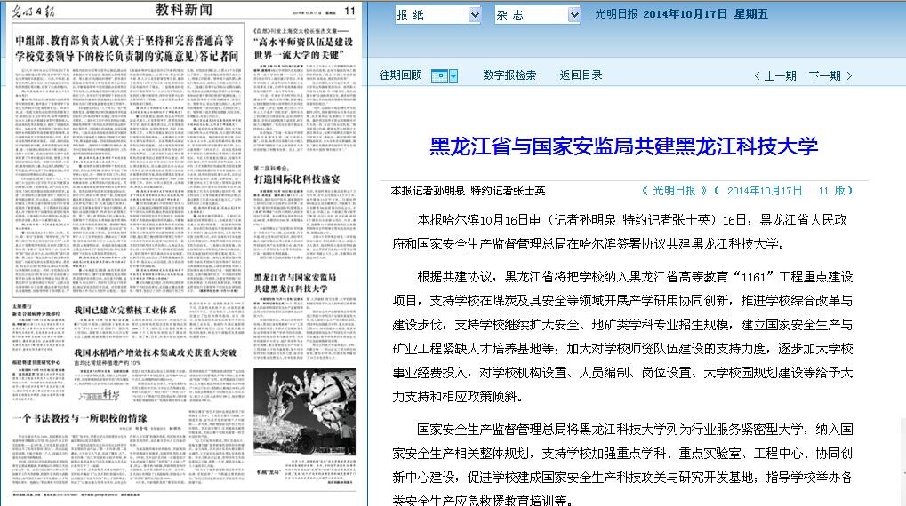 10月17日,《光明日报》、《黑龙江日报》、黑龙江电视台、东北网、《哈尔滨日报》等媒体对10月16日举行的黑龙江省与国家全生产监督管理总局共建乐鱼网站_乐鱼(中国)的签约仪式进行了宣传报道。