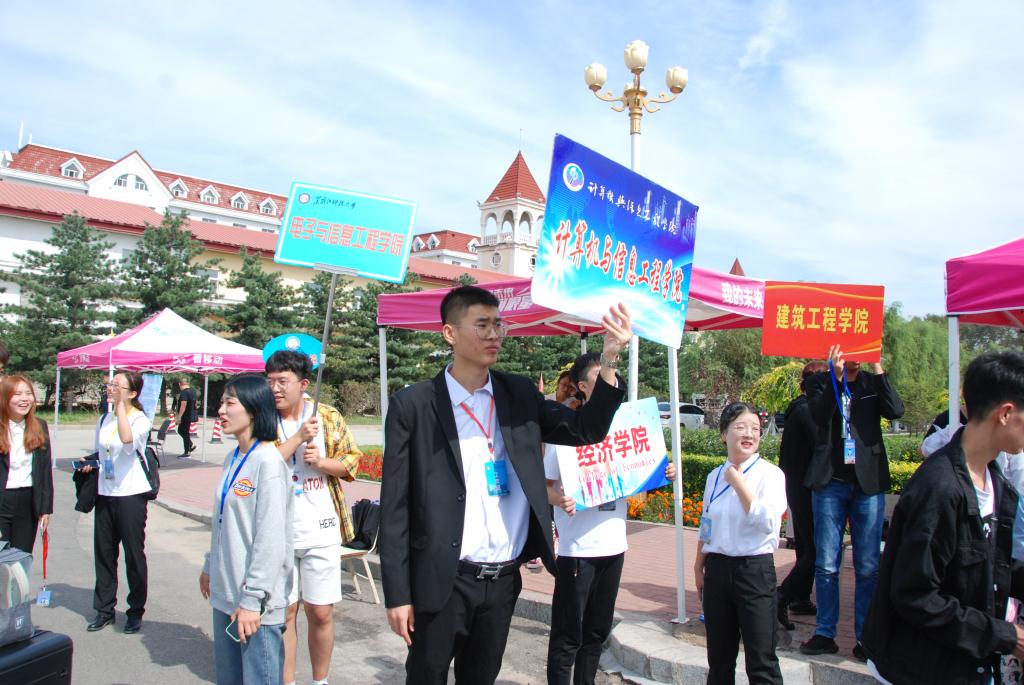 一大早,志愿者们前往哈尔滨各个火车站迎接新生,新生们陆续前往迎新点报到,工作人员和志愿者为新生提供细致入微的服务,各项工作井然有序。