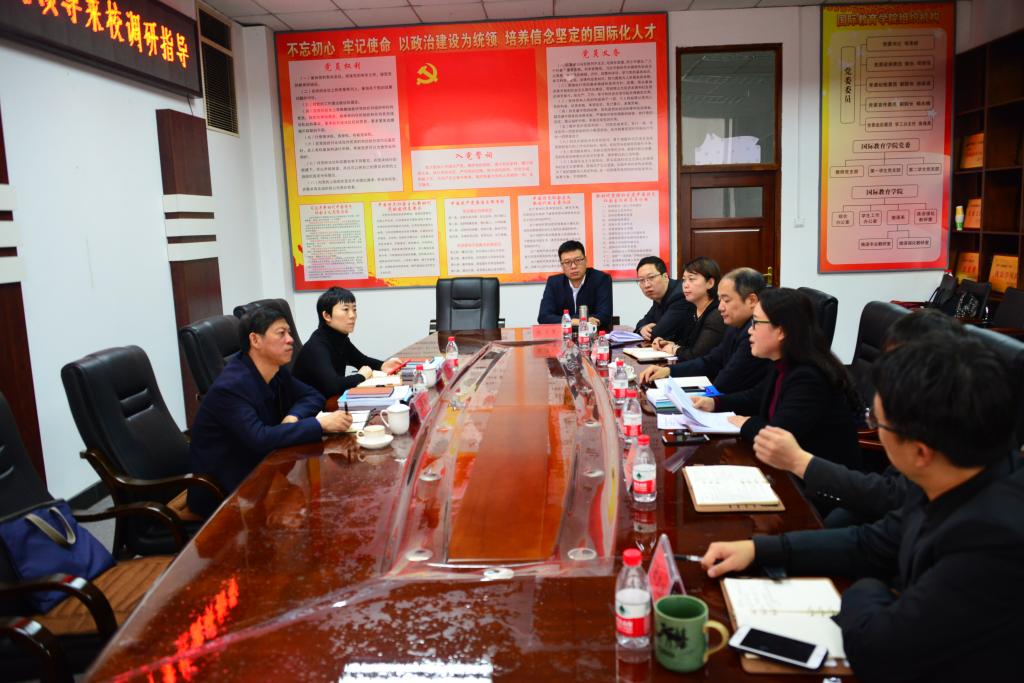 11月25日下午,省教育厅对外合作与交流处处长宗希云,吴昊来校调研,听取“改进高校国际交流合作评价”的意见和建议,指导和解决乐鱼网站_乐鱼(中国)国际合作与交流工作中存在的实际问题。副校长陈凯云在科技大厦高层0606会议室接待并主持座谈会,国际教育学院院长兼国际交流合作处处长母丽华,国际交流合作处副处长吕岚、国际教育学院副院长杨兆楠及国际交流合作处全体同志出席了座谈会。