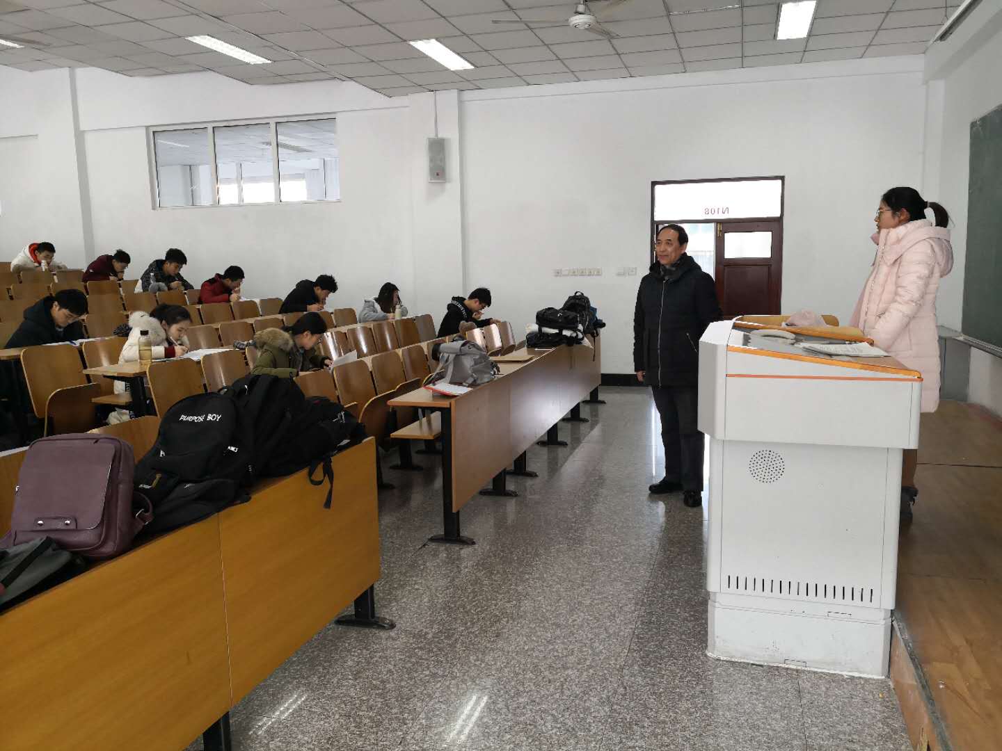 12月20日上午,校党委书记武俊峰深入科技大厦学生考试考场一线,检查指导期末考试工作,看望考生和监考教师。