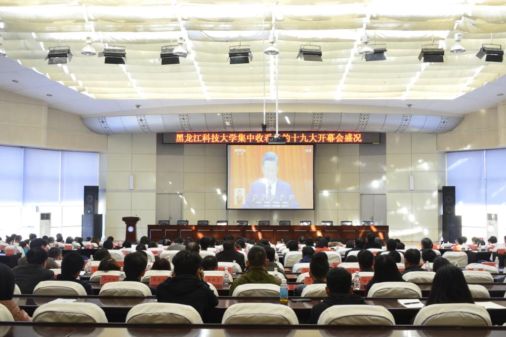 学校领导班子成员,党员处级干部、教师党支部书记、各民主党派负责人、学生辅导员和部分学生党员代表在办公楼报告厅集中收看了中国共产党第十九次全国代表大会开幕会直播,认真聆听了习近平总书记在大会上的报告。