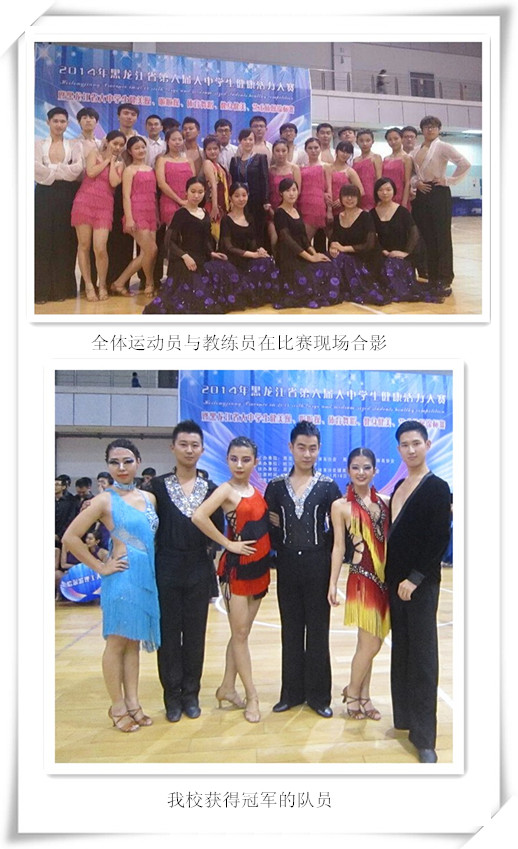 来自哈尔滨工业大学、东北农业大学等14所本科院校、8所高职高专和9所中学的860余名运动员参加了大赛。乐鱼网站_乐鱼(中国)派出由29名运动员组成的代表队,参加了本科院校甲A组体育舞蹈3个团体项目和9个单项的比赛。在历时两天的比赛中,乐鱼网站_乐鱼(中国)的参赛运动员不畏强手,临场技术发挥稳定,最终获得5金、4银、1铜,并摘得团体总分第三名的好成绩,教练员刘聪老师被省教育厅授予“优秀教练员”荣誉称号。代表队良好的队风、赛风赢得了组委会及兄弟院校的一致好评,展现了乐鱼网站_乐鱼(中国)大学生积极向上的良好精神风貌。