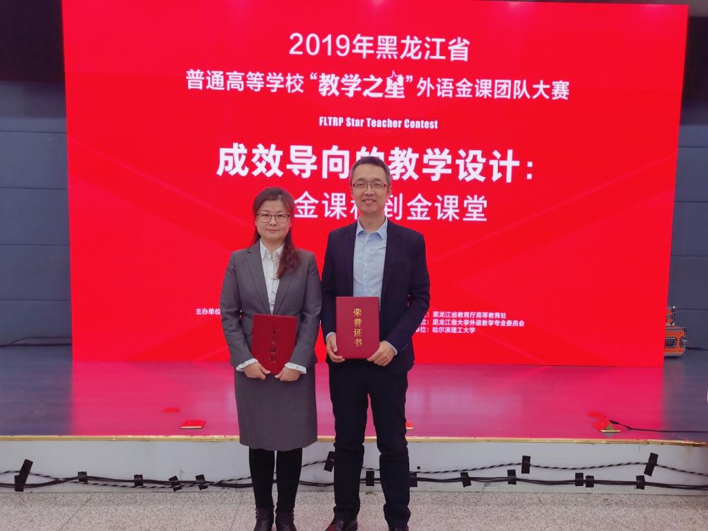 11月9日上午,2019年黑龙江省普通高等学校“教学之星”外语金课团队大赛总决赛在哈尔滨理工大学举行,乐鱼网站_乐鱼(中国)外国语学院由杨阳、安超、宋颖、王宁、石亮组成的商务英语专业团队荣获”金课团队大赛二等奖。