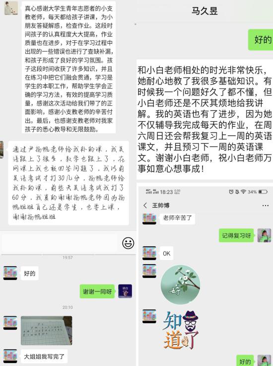 为了深入开展“大手拉小手”志愿服务活动,以线上“云辅导”形式,精准、精细、精心的帮助留守儿童进行学业辅导。自疫情防控以来,校青年志愿者协会、计算机学院团委、人文学院团委、国际教育学院团委、理学院团委,广大团员青年与150余名绥棱县留守儿童学生家长取得联系,添加微信、QQ等联系方式,形成家校合力,共同关注留守儿童学业情况,努力成为他们心中的“知心人”,提高帮助扶持力度与效率。广泛动员团学干部,制定“一对一”帮扶计划,由于当地教师缺乏网上教学经验,团学干部利用空闲时间为绥棱县的留守儿童进行课后“一对一”线上学习辅导,围绕停课不停学的总体要求,解决学生课后辅导难的问题。