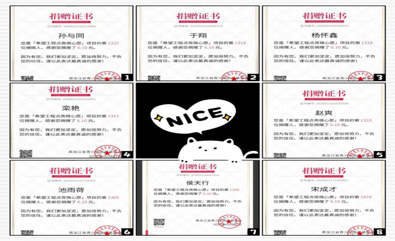 为弘扬“互帮互助,扶贫帮困”的精神,让留守儿童切实感受到关爱,电信学院团委、管理学院团委、材料学院团委、外国语学院团委,依托黑龙江省希望工程微信公众号于6月1日-6月3日动员广大团员青年积极、有序的参与到线上捐款、捐物活动。活动开展以来,团员青年积极踊跃地参与其中,通过红十字会、微博、支付宝等具有线上自助捐款、捐物通道的官方平台为贫困留守儿童送达爱心、贡献力量,助力贫困留守儿童健康快乐地成长!