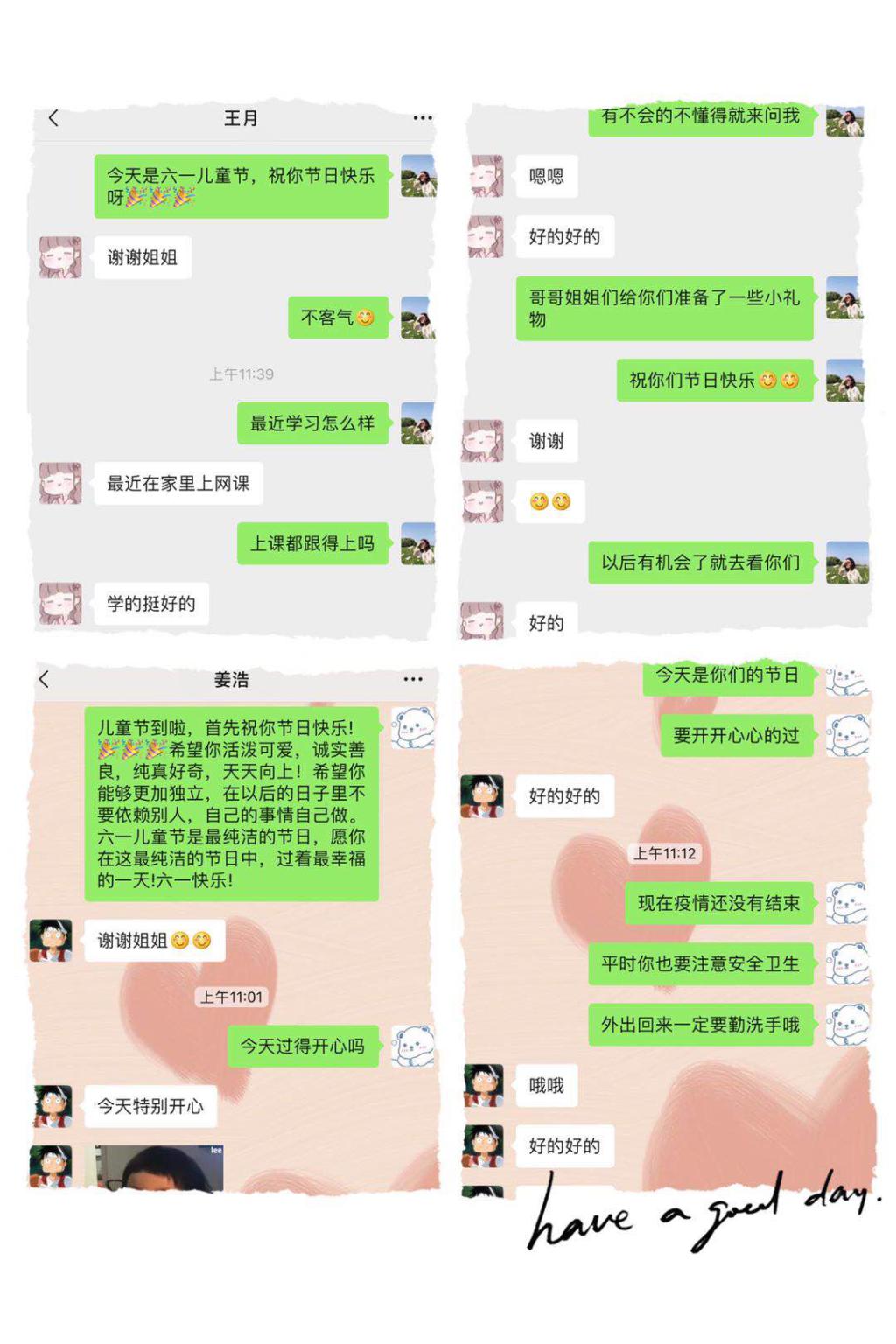 为持续开展好大学生与留守儿童“大手拉小手”关爱活动,大力弘扬“奉献、友爱、互助、进步”的志愿服务精神,彰显乐鱼网站_乐鱼(中国)青年学生的责任与担当,在六一国际儿童节到来之际,乐鱼网站_乐鱼(中国)各级团组织精心组织、积极沟通,与绥棱县10所中小学200余名留守儿童有效对接,共组织500余名志愿者参与到“大手拉小手 共度儿童节”云端关爱留守儿童的行动中。