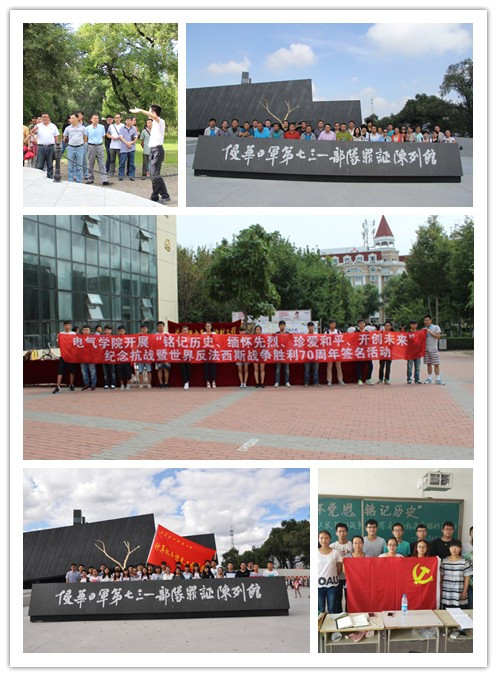 近期来,按照学校党委部署,学校开展了系列宣传思想教育活动。8月24日,党委宣传部、校团委联合举办“纪念中国人民抗日战争暨世界反法西斯战争胜利70周年”师生书法作品展。8月25日、9月1日,学校党委分别召开纪念中国人民抗日战争暨世界反法西斯战争胜利70周年民主党派成员代表座谈会、师生代表座谈会。学校各级党组织也纷纷开展纪念活动,马克思主义学院举办专题学习研讨活动,体育部组织全体教职工参观731遗址,进行爱国主义教育,电信学院开展“铭记历史、圆梦中华”主题班会团活和主题征文活动,电气学院开展师生座谈会、网上祭英烈活动,人文学院举办“牢记历史、缅怀先烈”主题微语大赛,经济学院组织观看爱国主义电影、开展微博互动等活动,计算机学院组织学生骨干参观侵华日军第七三一部队罪证陈列馆,信息网络中心组织教职工集体观看革命电影《血站台儿庄》,实训中心、理学院等单位利用电子屏宣传纪念活动,嵩山校区组织开展“国旗下的演讲”主题活动,等等。