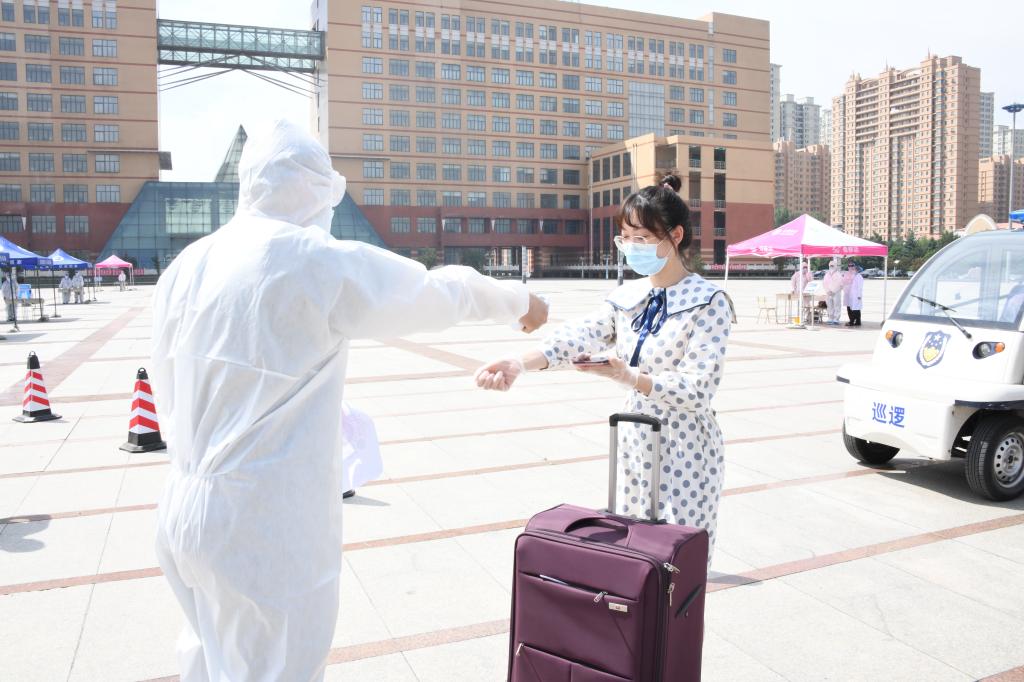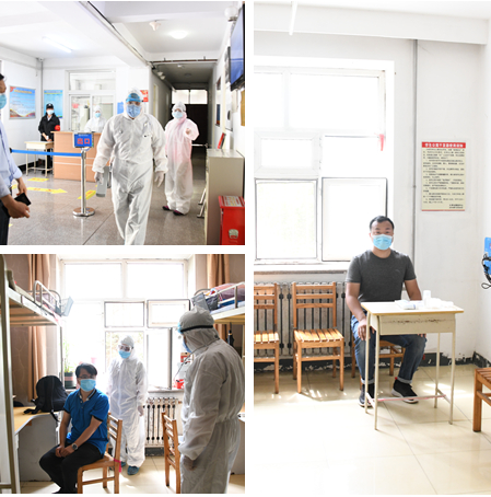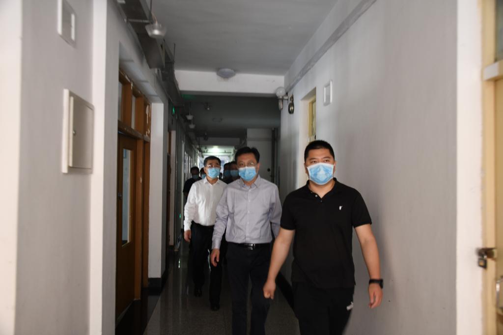 校领导率队对第一批学生返校所涉及的接站、入校、入住隔离寝室、到实验室学习、到食堂就餐等场景进行了模拟演练,并对家属区与校园物理隔离情况、实验室、应急隔离室、浴池等场所准备情况进行检查验收。
