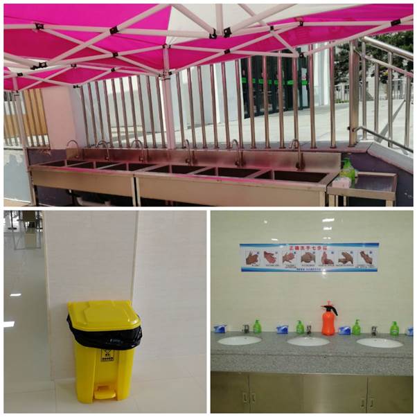 同时在卫生间摆放洗手液、在食堂入口处设置室外洗手池,在餐厅内设置专用口罩回收垃圾桶,全面做好食堂疫情防控安全工作。