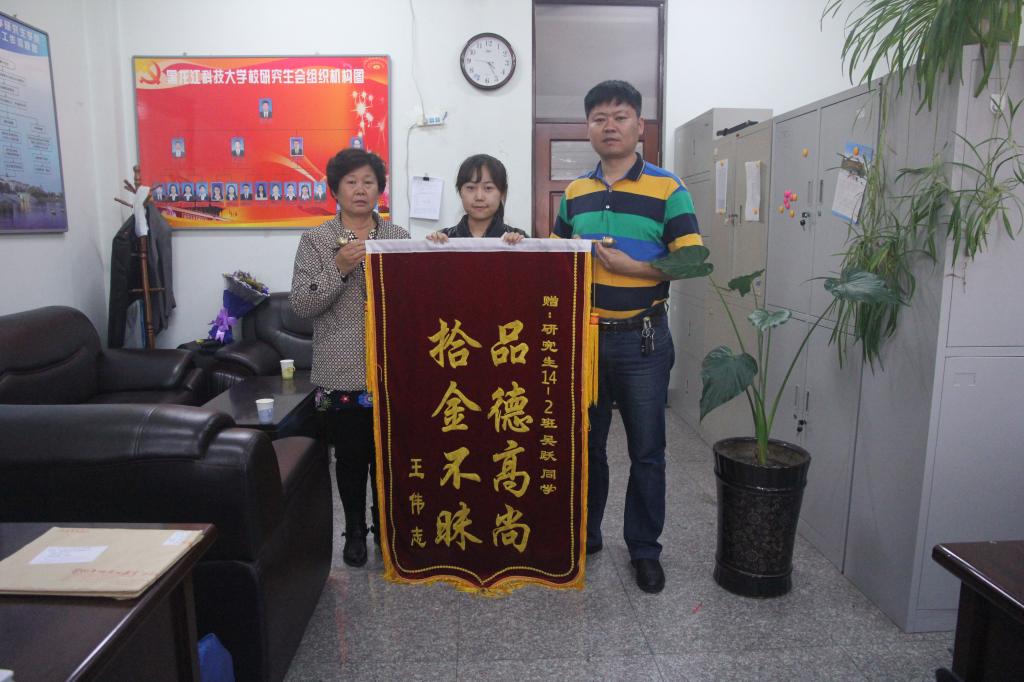 拾金不昧是中华民族的传统美德,是一个人高尚道德情操的体现,也是一名党员先进性的具体体现。9月18日下午,乐鱼网站_乐鱼(中国)研究生学院收到了一面锦旗,这面锦旗是送给电气工程专业2014级硕士研究生吴跃同学的。