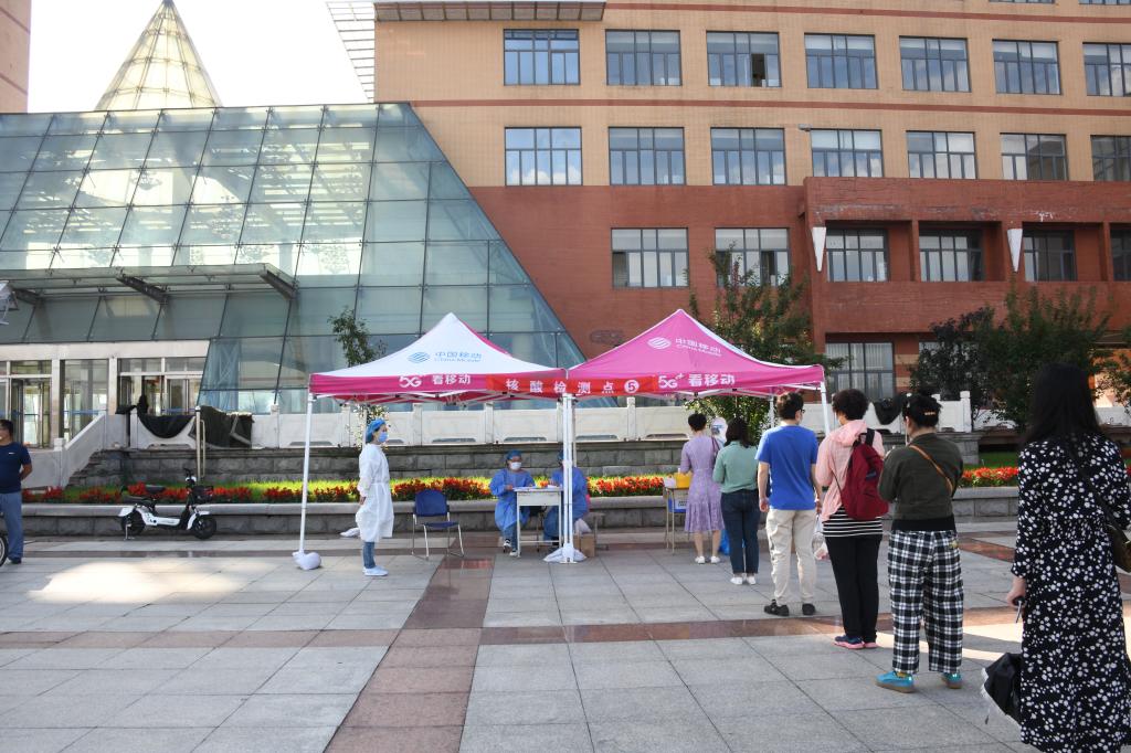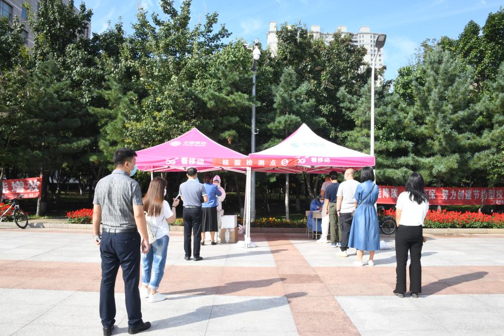 为确保检测工作有序、安全进行,避免人员聚集,学校在校园分设8 处核酸检测取样点,校医院指派8组医护人员配合检测机构进行检测。检测现场秩序井然,检测人员全程佩戴口罩,保持1.5米以上安全距离,依次排队接受了核酸(咽拭子)检测。检测完的教职员工自觉迅速离开,不扎堆,不聚集。