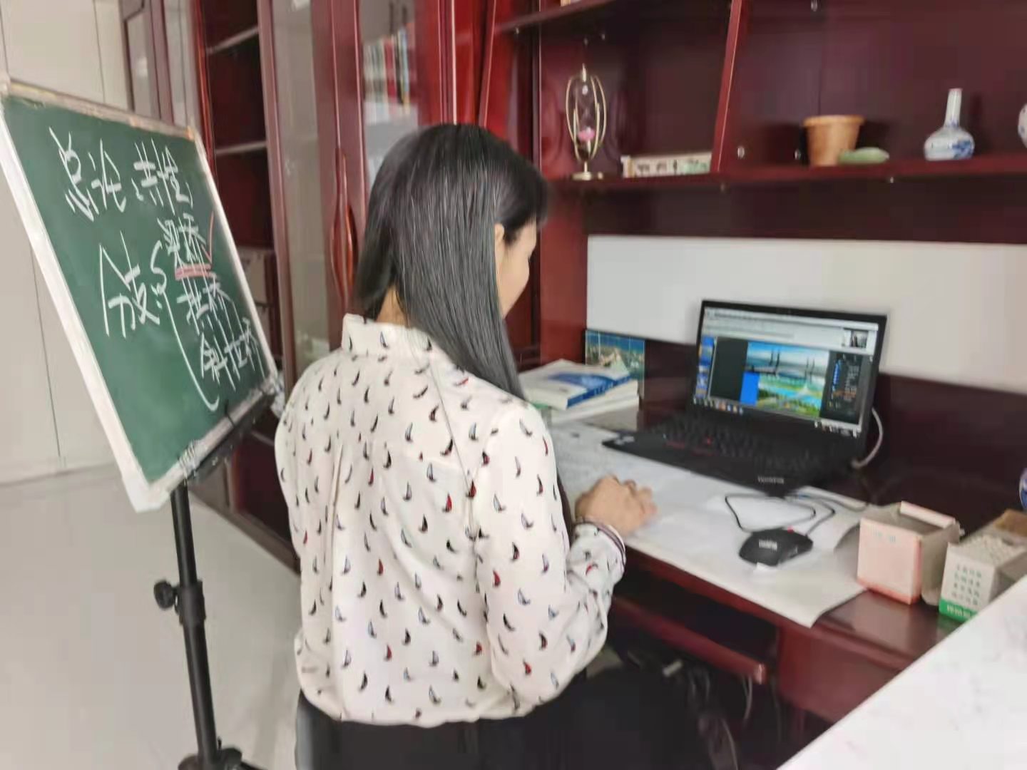 校长郝传波、副校长张国华“走进”直播课堂及时了解教师上课直播情况、网络运行情况和学生出勤学习情况。