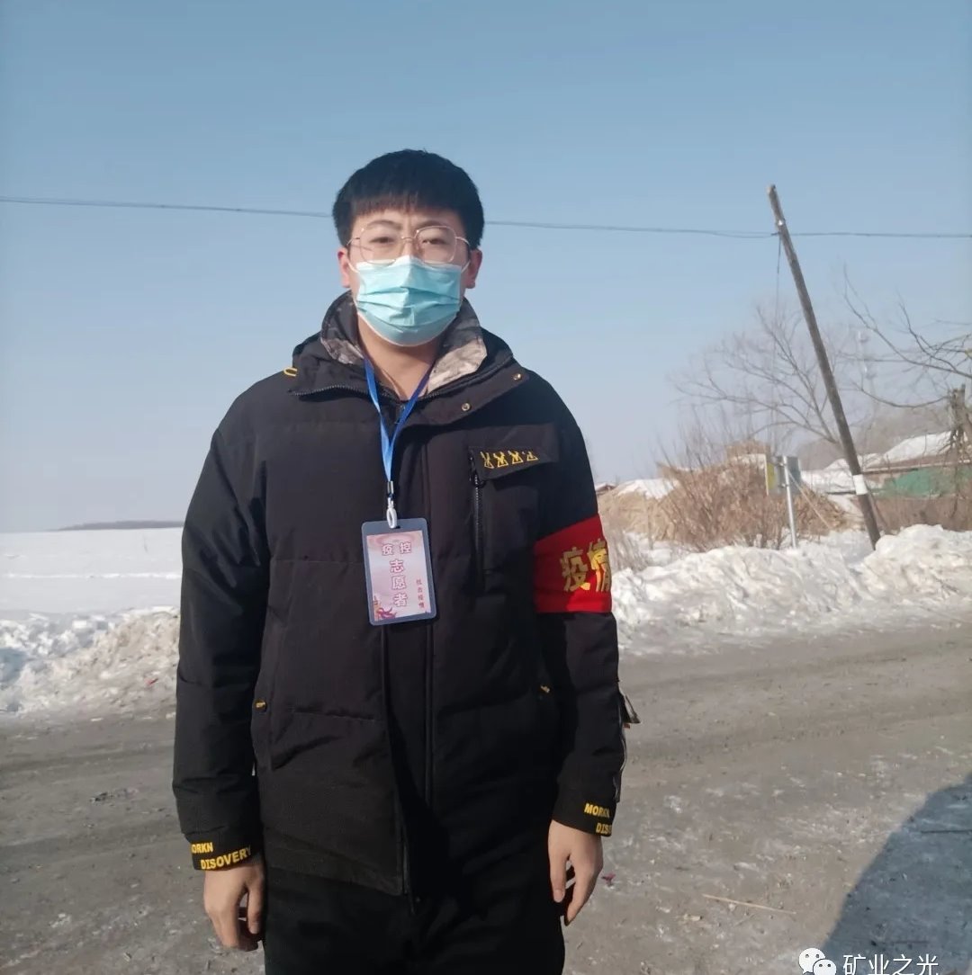 他是矿业工程学院勘查19-2班贾清山,在黑龙江省牡丹江市林口县柳树镇三道村做村口防疫的志愿者,主要负责封村防疫,来往车辆的盘查和记录。作为一名大学生,疫情期间他主动参加志愿服务并且在疫情防控工作中积极工作,本着认真负责的态度,不畏艰辛,不怕寒冷,认真负责的做好村口往来人员和车辆的排查和记录,并做好汇报工作,以确保村民群众的安全,彰显了青年人热情、勇敢、助人、奉献的家国情怀。