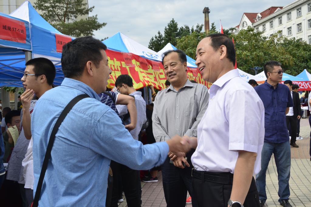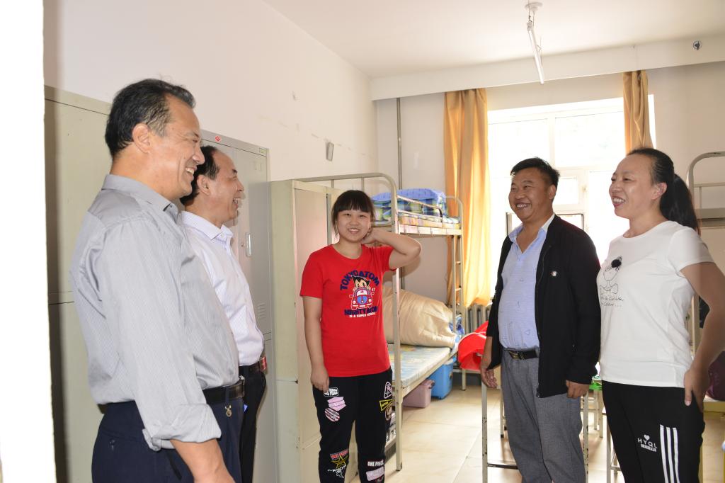 9月1日上午,校长武俊峰、校党委副书记张明华深入文化广场、体育馆、校医院、学生公寓等迎新现场检查指导迎新工作,看望前来报到的新生和家长们,并慰问迎新一线工作人员和学生志愿者。