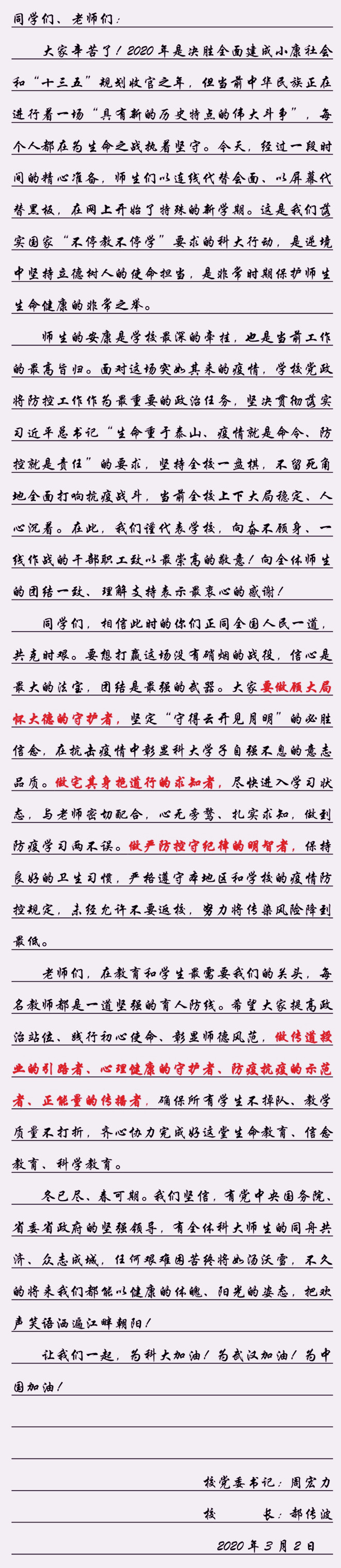 【新学期寄语】立德树人担使命 同舟共济克时艰