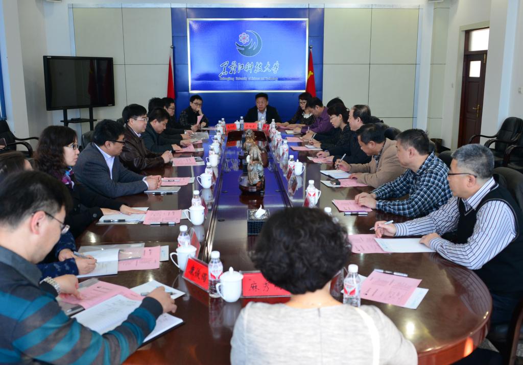 校长武俊峰主持座谈交流会。武俊峰同志首先代表学校对绥化学院院长张凤武一行的来访表示热烈欢迎,并希望借此机会相互学习,加强合作。与会的相关部门就考察交流内容向客人介绍了主要做法和发展成效。