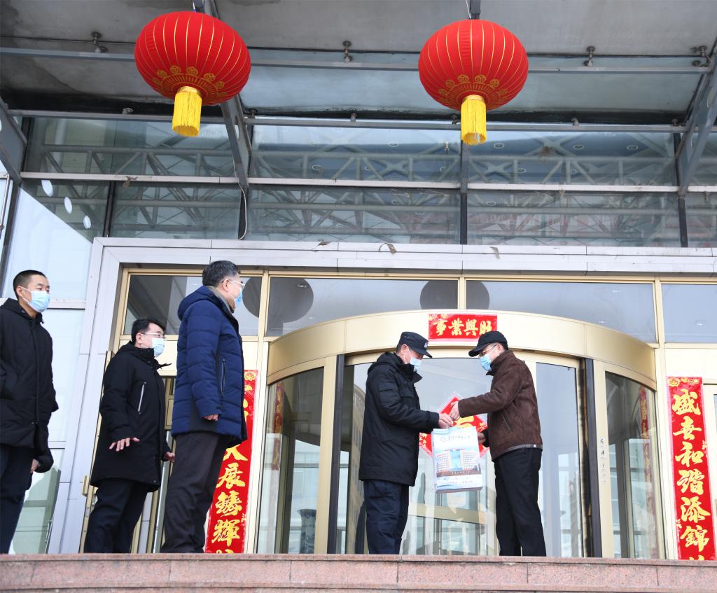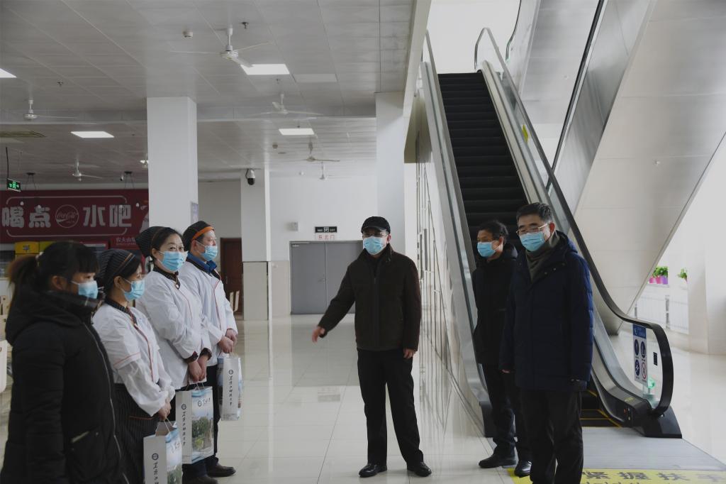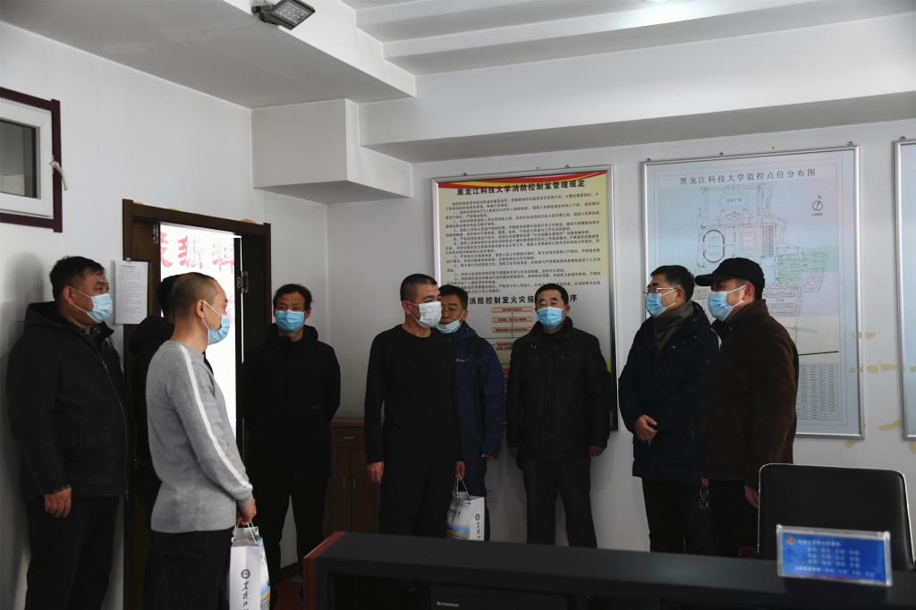 2月11日除夕上午,校党委书记周宏力,校长郝传波,党委副书记于成学,副校长桑玉军,党委常委、组织部长李伟带队深入校园各场所开展校园安全检查,实地了解校园安全保卫、疫情防控和后勤服务保障等工作情况,并为坚守在一线岗位的教职工送去新年问候与新春祝福,大家纷纷表示感谢学校党委的关心关爱,一定会坚守岗位,努力工作,以优异成绩庆祝建党100周年。
