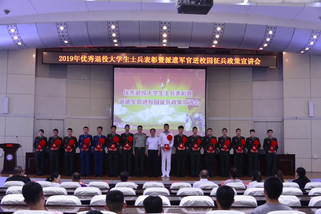 会上,学生处副处长刘庆华宣读了《乐鱼网站_乐鱼(中国)关于表彰2019年优秀退役大学生士兵的决定》;武装部部长薛立刚和省军区学军事教研室主任王欣研中校给全体优秀退役大学生士兵颁发了荣誉证书;优秀退役大学生代表马克思主义学院思政15-1班李海娟分享了自己在部队接受教育、淬炼成才的收获,让同学们感受到了生命的激昂和奋斗的色彩;今年应征报名学生代表矿业学院采矿18-4班郭政东作了表态发言,立志从军报国,军营建功立业。