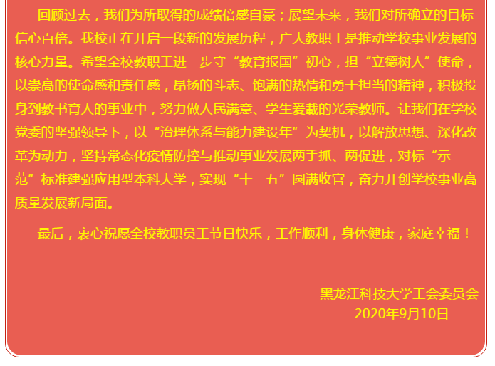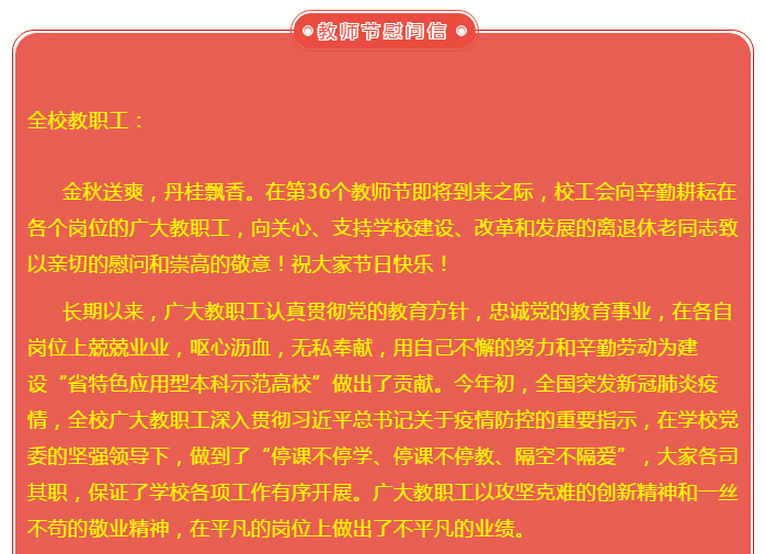 【庆祝教师节】校工会致全校教职工的慰问信