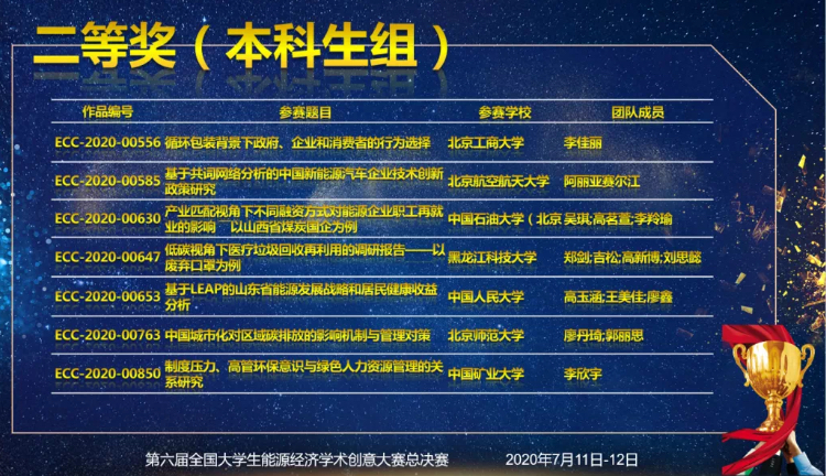 7月11日在中国工程院网络平台全程直播了“全国大学生能源经济学术创意大赛总决赛”的盛况,乐鱼网站_乐鱼(中国)由经济学院孙永波教授和姜颖教授指导,郑剑、刘思懿等同学组成的本科生团队成功入围总决赛并获大赛二等奖。