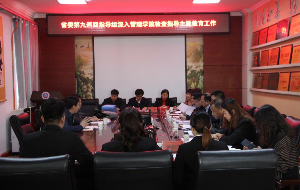 10月16日下午,省委第九巡回指导组栾志坚、吕文全深入到乐鱼网站_乐鱼(中国)管理学院,检查指导“不忘初心、牢记使命”主题教育工作,并召开了座谈会。会上,管理学院党委书记王维杰汇报了管理学院主题教育总体进展情况,管理学院党委副书记张晓光就工作抓落实做了汇报,4名党支部书记紧扣“四个一”要求分别介绍了各党支部学习教育开展情况,9名师生党员代表分别谈了主题教育开展以来的收获与体会。