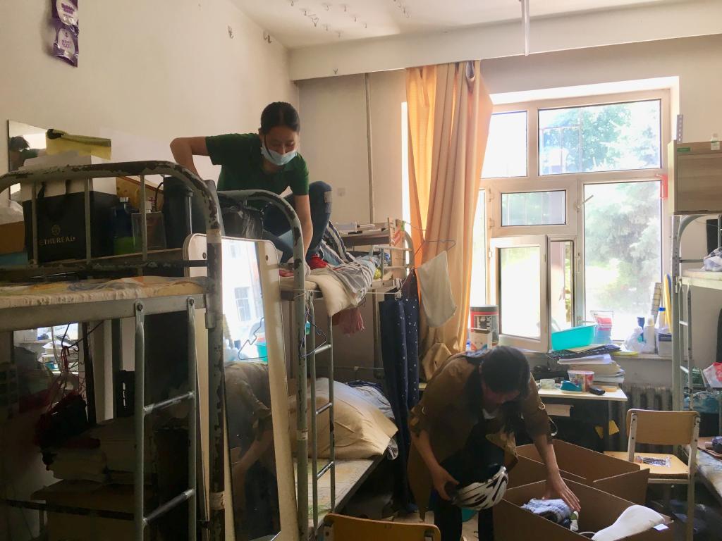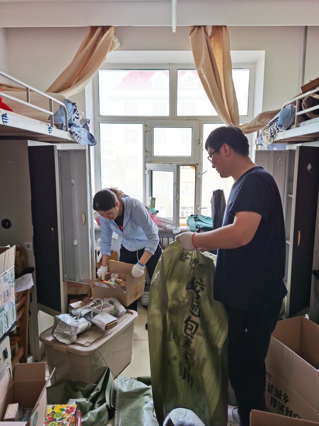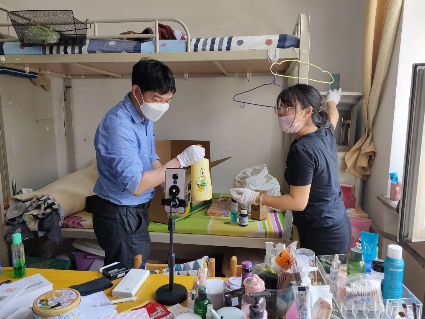 “老师,书架上的书是我的”、“同学,这个衣服给你叠好装起来了”、“大家再仔细看一下,还有没有落下的个人物品”,一声声反复叮咛、一句句体贴话语、一个个暖心举动、一幕幕感人画面,每天都在学生宿舍无数次重复着……淡黄的快递箱、浅绿的编织袋、视频中的同学、奔走的辅导员,成为了校园里里一道既靓丽、又让人泪目的风景。