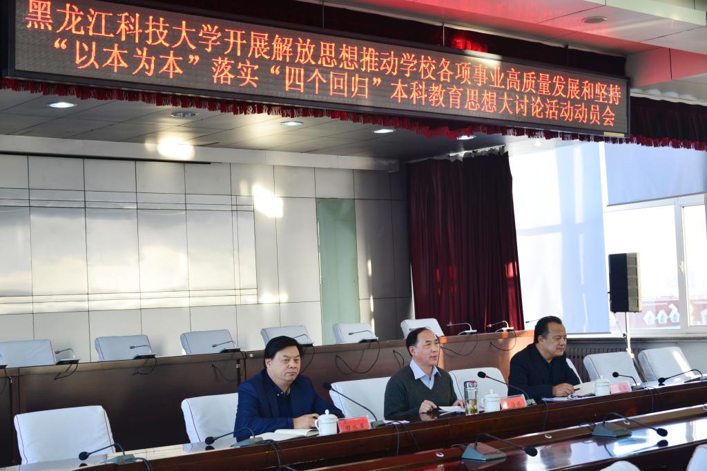 武俊峰在讲话中指出,在全省广泛开展解放思想大讨论活动,是省委贯彻落实习近平总书记在振兴东北座谈会上的重要讲话和考察黑龙江时的重要指示精神的重大决策,是我省结合庆祝改革开放四十周年、立足新时代新要求、面对新形势新任务作出的具体举措,是推进龙江全面振兴全方面振兴、实现高质量发展的重要部署。根据省委有关要求,学校党委研究制定印发了解放思想大讨论实施方案,就是要把解放思想大讨论活动与贯彻落实习近平总书记在全国教育大会上讲话精神和新时代全国高等学校本科教育工作会议精神结合起来,与助推龙江全面振兴全方位振兴结合起来,与开展本科教育思想大讨论活动和筹备召开学校本科教育工作会议结合起来。这既是学校充分发挥人才和智力密集优势,履行为龙江全面振兴全方位振兴提供人才和智力支持的时代责任之必须;也是学校处于爬坡过坎、滚石上山的重要历史阶段,通过思想大解放汇聚智慧和力量推动学校事业高质量发展之必须。