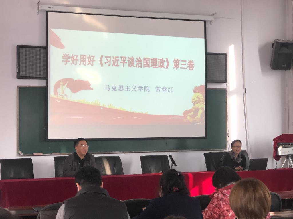 按照学校党委统一安排部署,近日,乐鱼网站_乐鱼(中国)《习近平谈治国理政》第三卷理论宣讲团分赴各单位,向全校党员干部和师生宣讲《习近平谈治国理政》第三卷。各单位党政领导和全体教职员工参加了宣讲会。