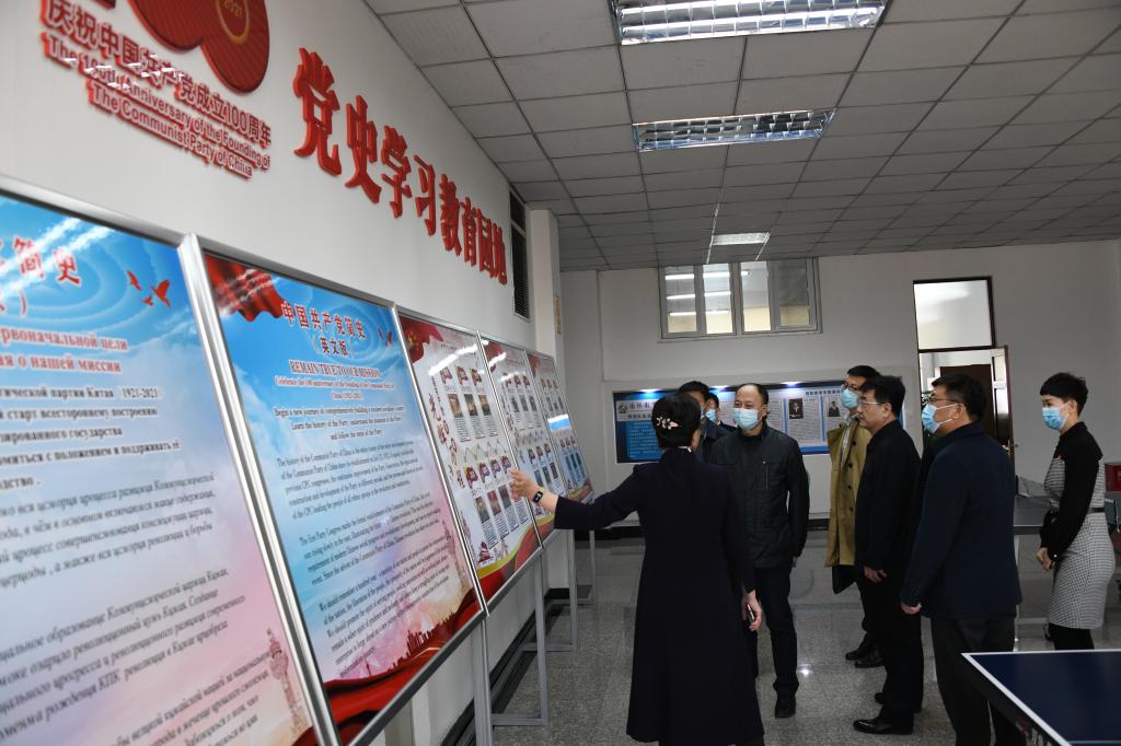 调研指导组一行还查看了开展党史学习教育的相关材料,并通过走流程的方式到就业服务大厅、学生处心理咨询室、国际教育学院心理咨询室、学生服务大厅等处开展工作调研。