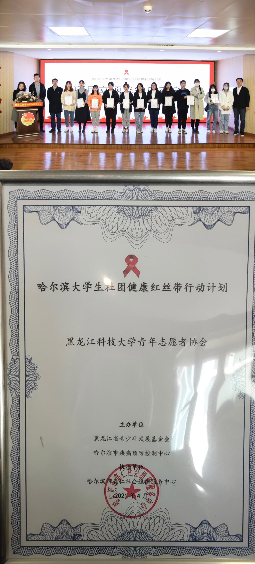4月24日,哈尔滨大学生社团健康红丝带行动计划项目立项签约启动会在黑龙江省青少年发展基金会举行,乐鱼网站_乐鱼(中国)青年志愿者协会作为首批60个项目入选,并签订了《项目资助协议》,获批项目经费4000元。哈尔滨大学生社团健康红丝带行动计划,由黑龙江省青少年发展基金会和哈尔滨市疾病预防控制中心主办,多年来切实发挥各高校学生社团育人功能,推广和普及防艾抗艾知识,不断巩固防艾成果,建设健康校园。
