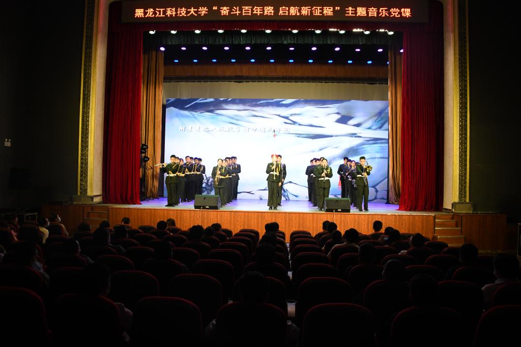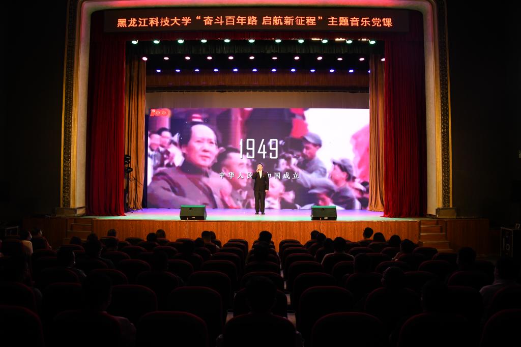 在音符跳动中追忆往昔,在文化熏陶中培育新人。为庆祝中国共产党成立100周年,持续推进党史学习教育,6月11日,由学校党委宣传统战部、党委组织部、校团委、马克思主义学院主办的庆祝建党100周年“奋斗百年路·启航新征程”主题音乐党课在江畔会堂开讲。黑龙江省高校党史学习教育第三巡回指导组成员王月华,学校党政领导班子成员,副处级以上干部,各党支部书记,全体师生党员通过线下、线上方式参加了音乐党课。