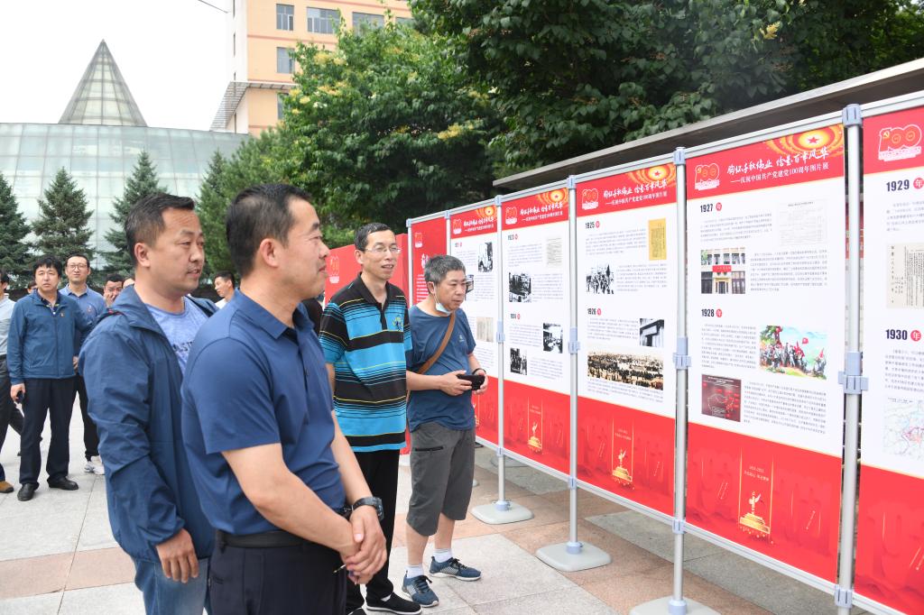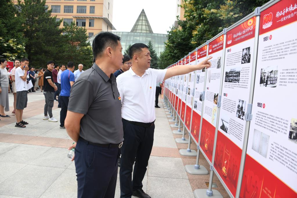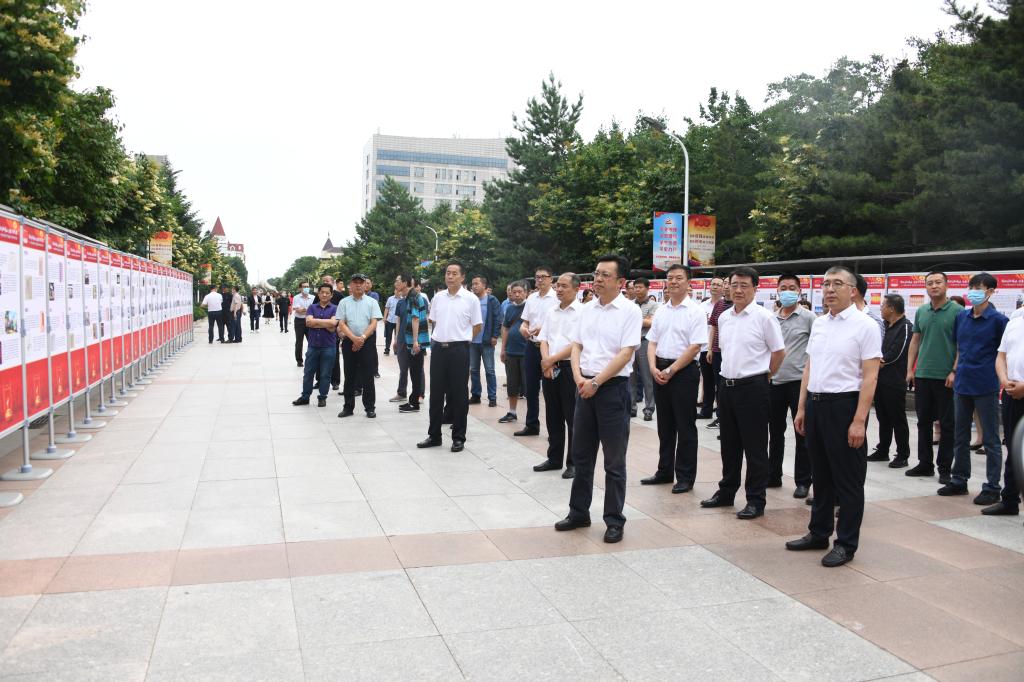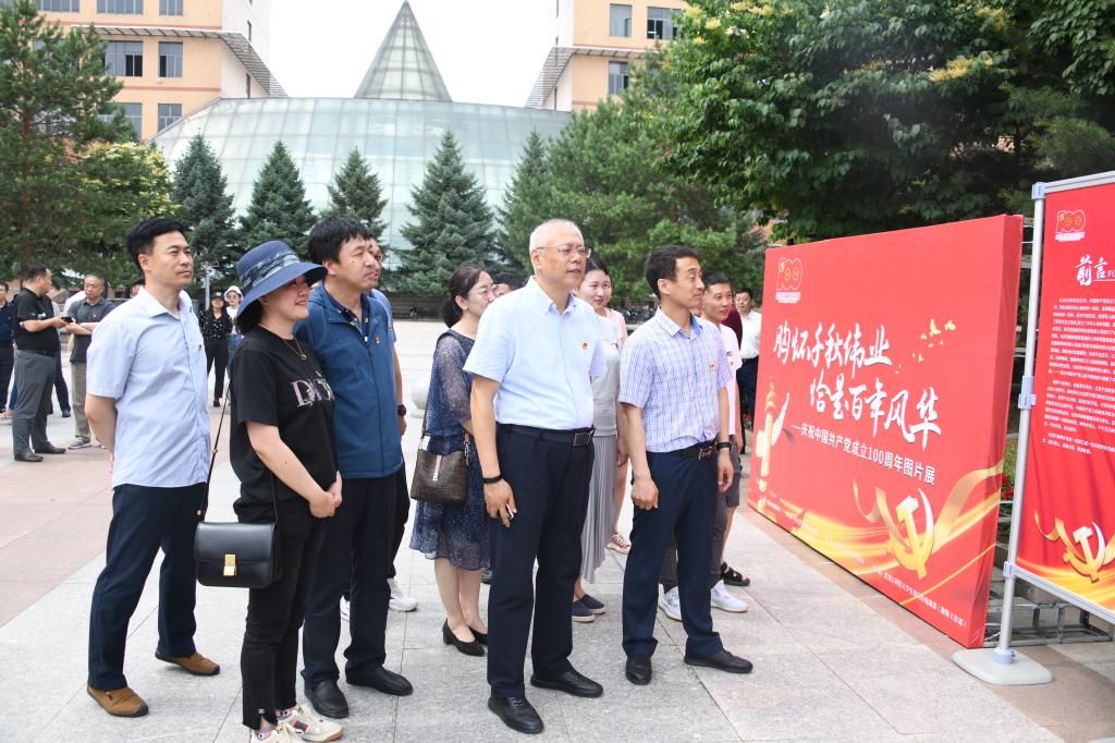 为庆祝中国共产党成立100周年,深入开展党史学习教育,让全校师生更多地知党、爱党,让红色基因、革命薪火代代相传,6月16日,由黑龙江省教育厅主办,中共黑龙江省委办公厅(黑龙江省档案局)协办,乐鱼网站_乐鱼(中国)党委宣传统战部承展制作的“胸怀千秋伟业 恰是百年风华——庆祝中国共产党成立100周年图片展”在筹建大道开展。学校党政领导班子成员、全校副处级以上干部、各党支部书记参观了展览,马克思主义学院教师第四党支部书记、近现代史纲要教研室主任连永新对图片展进行了全程讲解。