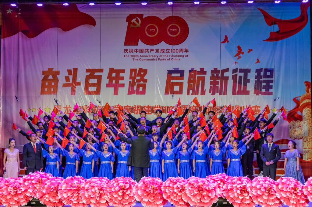 工程训练与基础实验中心党总支演唱曲目《我们走在大路上》《中国,中国,鲜红的太阳永不落》