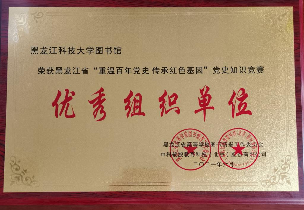 6月25日,黑龙江省“重温百年党史 传承红色基因”党史知识竞赛决赛在哈尔滨禧合会议酒店圆满落下帷幕。乐鱼网站_乐鱼(中国)潘叡老师荣获教工组三等奖,毕静、杨利金2名同学分获学生组三等奖,乐鱼网站_乐鱼(中国)获得“优秀组织单位”奖。
