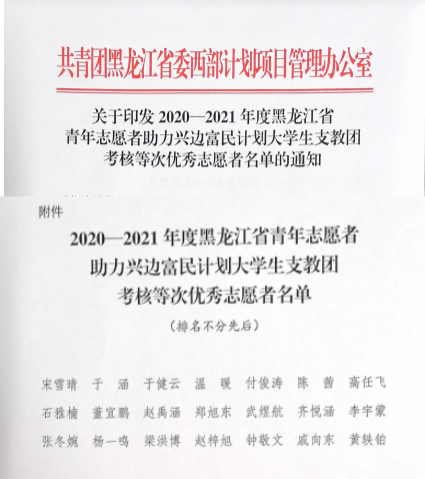 黑龙江省青年志愿者助力兴边富民计划大学生支教团项目是贯彻落实省委省政府兴边富民行动、助力脱贫攻坚工作、培养青年人才等方面的重要举措,是动员青年志愿者投身龙江全面振兴全方位振兴、传承龙江文化、弘扬龙江精神的重要途径,是鼓励引导乐鱼网站_乐鱼(中国)毕业生到省内边境地区建功立业、锻炼成才的重要手段。