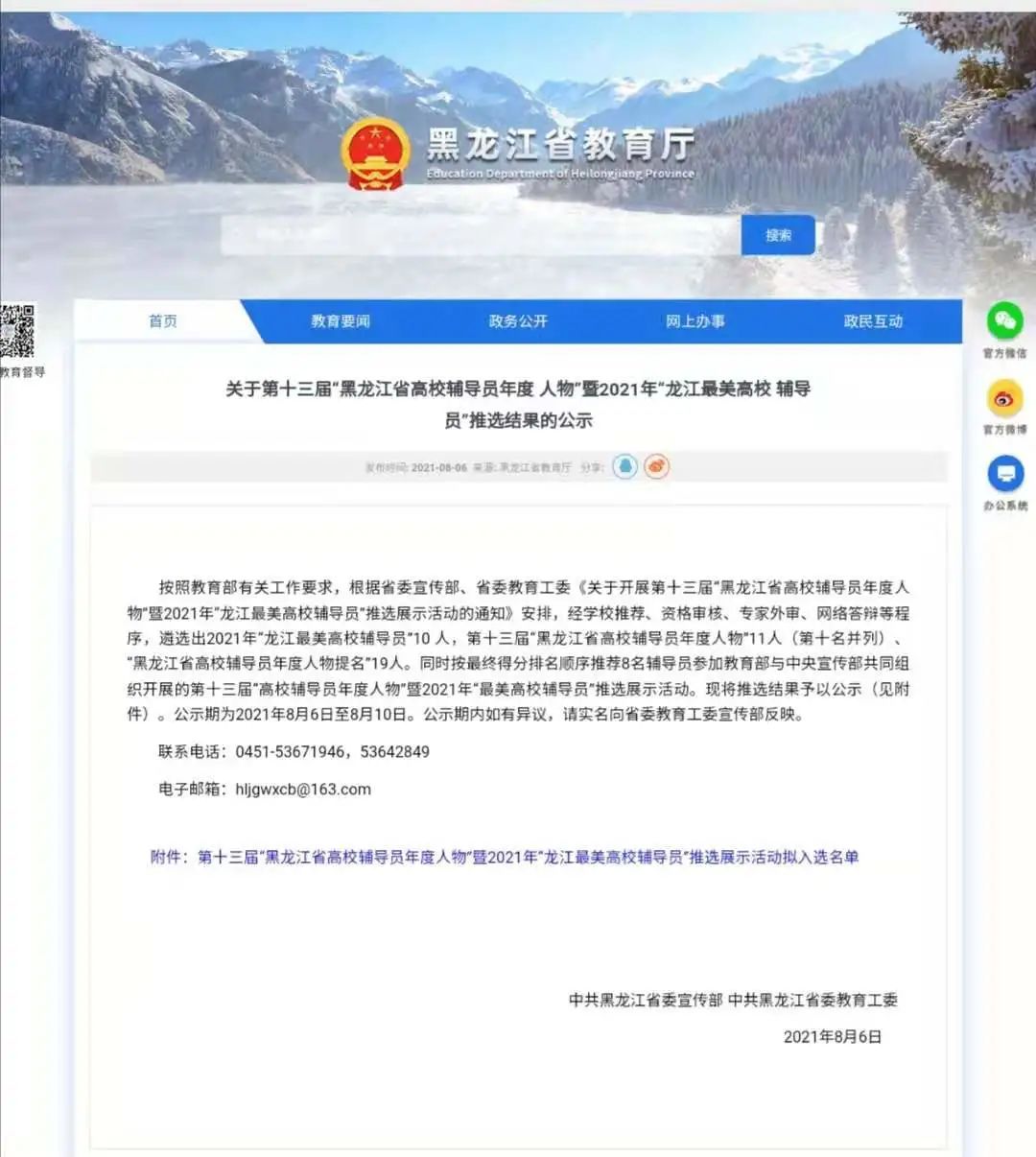 近日,由省委宣传部、省委教育工委主办的第十三届“黑龙江省高校辅导员年度人物”暨2021年“龙江最美高校辅导员”评选活动结果揭晓,乐鱼网站_乐鱼(中国)国际教育学院党委副书记徐海英荣获2021年“龙江最美高校辅导员”荣誉称号;电气与控制工程学院学工办副主任韩大伟荣获第十三届“黑龙江省高校辅导员年度人物”提名。徐海英将代表黑龙江省参加教育部2021年“最美高校辅导员”推选展示活动,这是乐鱼网站_乐鱼(中国)辅导员首次被推荐参加全国最美高校辅导员评比。