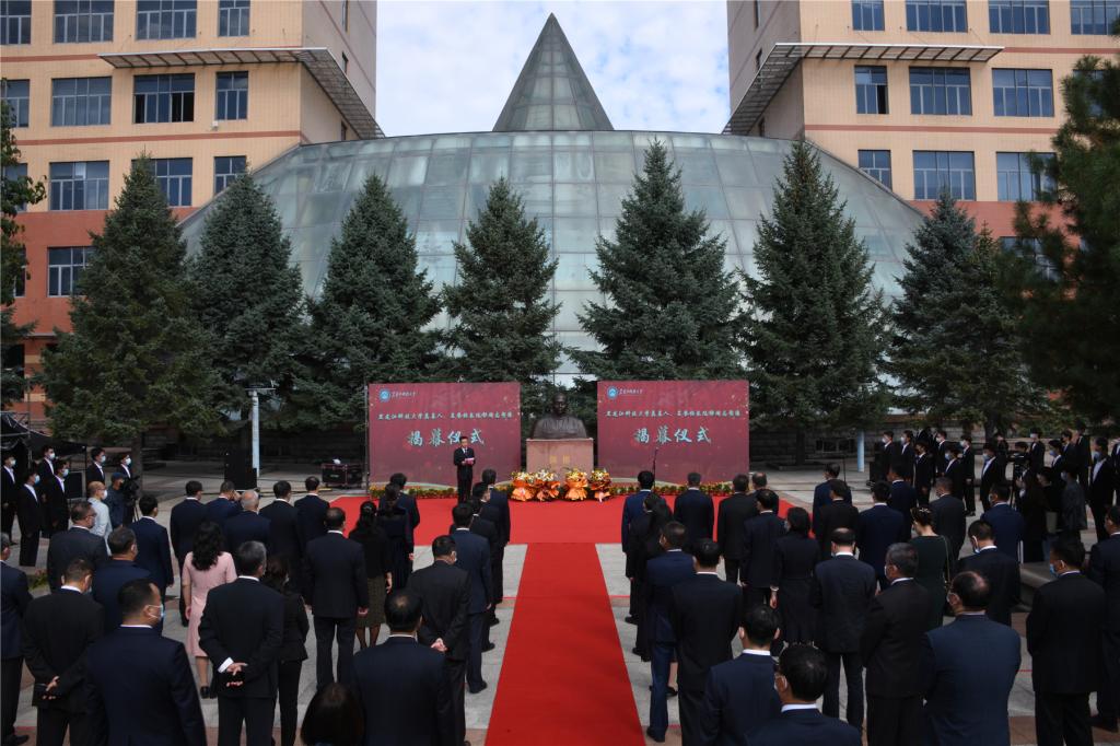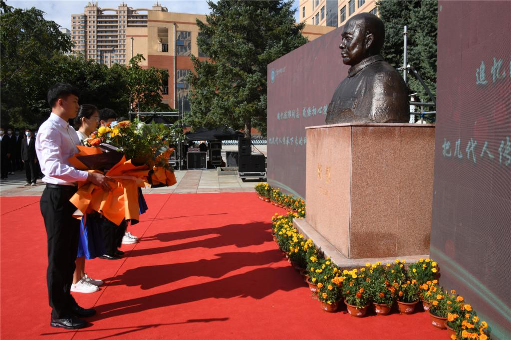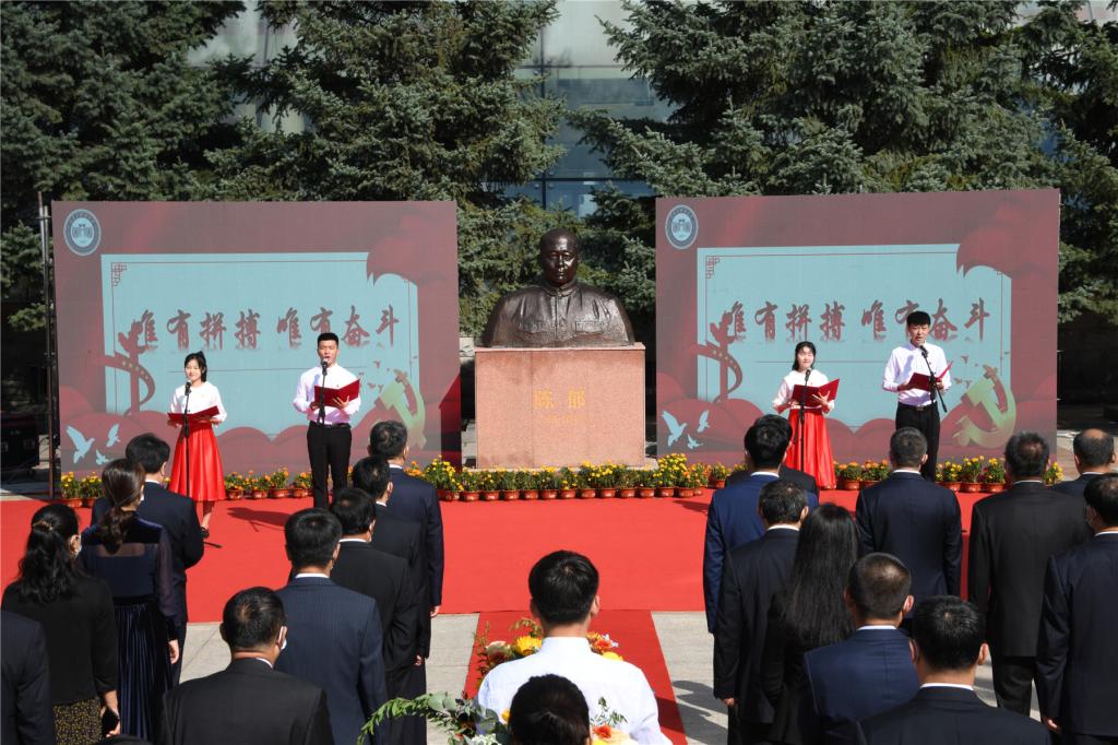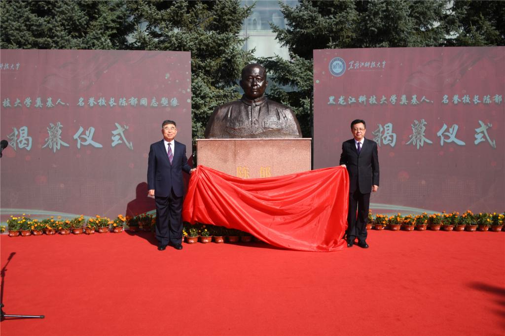 校党委书记周宏力、校长郝传波为陈郁同志塑像揭幕