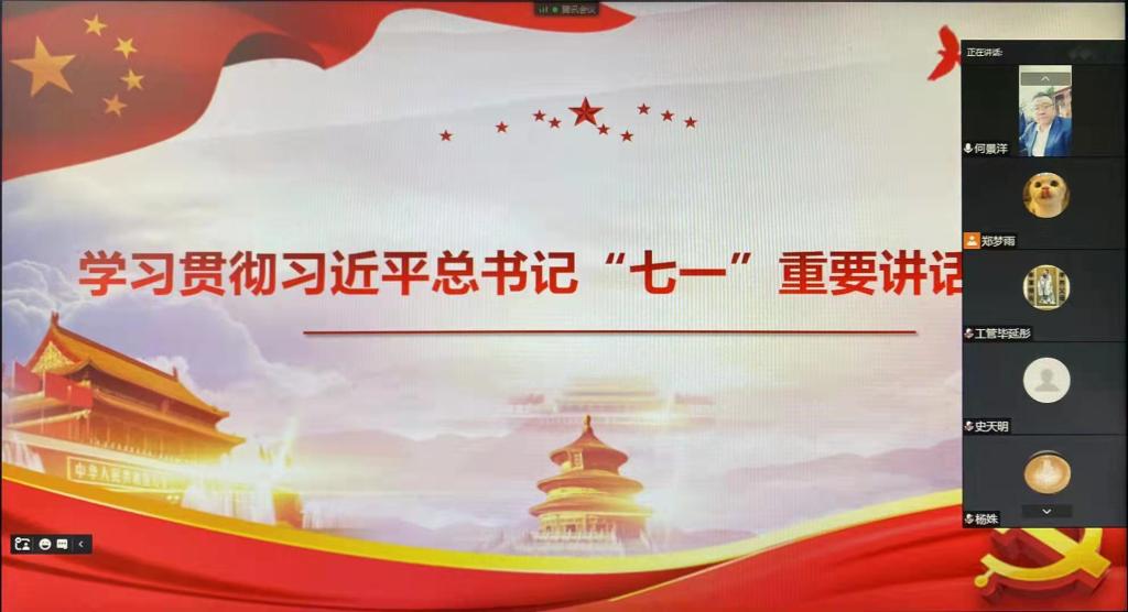 管理学院党委于9月20日利用腾讯会议室线上举行学习习近平总书记“七一”重要讲话精神宣讲会,学院班子成员、全体教职工参加会议。学校宣讲团成员、学院党委书记何景洋进行了专题宣讲。