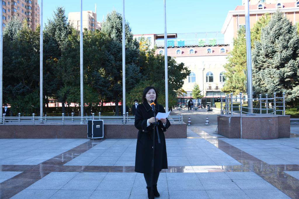 为热烈庆祝中华人民共和国成立72周年,进一步激发全校广大青年学生的爱国情、强国志、报国行,引领广大青年坚定制度自信,凝聚青春力量,10月1日早8:00,“青春向党 强国有我”主题升旗仪式在科技广场举行。校党委书记周宏力,校党委副书记赵科学,在校值班领导副校长、党委常委张宝成,学校办公室、宣传统战部、学工部、校团委、保卫处、信息网络中心部门负责人,专职团学工作干部和青年学生代表参加了升旗仪式,升旗仪式由校团委副书记马紫微主持。