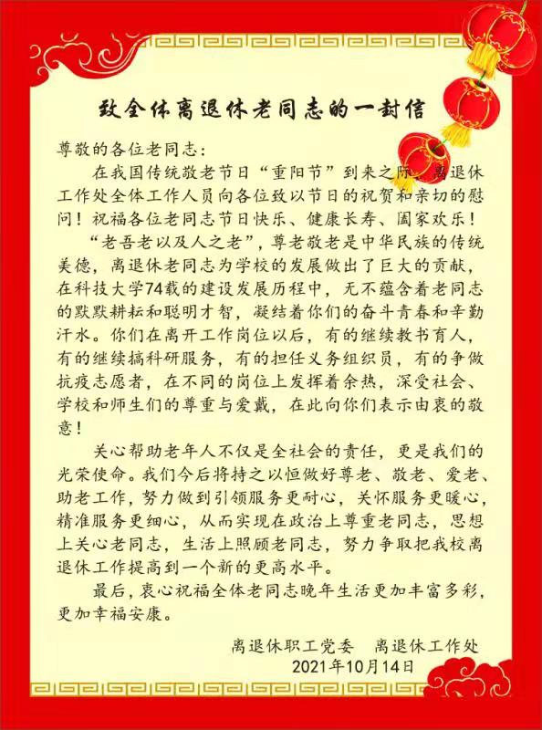 “步步登高开视野,年年重九胜春光”。在重阳节到来之际,离退休职工党委、离退休工作处联合开展了重阳节书画摄影展示活动,以此展现离退休老同志老有所学、老有所为、老有所乐的精神面貌。全校离退休老同志热情参与、踊跃投稿,共评选出一二三等奖和优秀作品奖若干名,现将部分获奖作品予以展示。祝福各位老同志节日快乐、健康长寿、阖家欢乐!